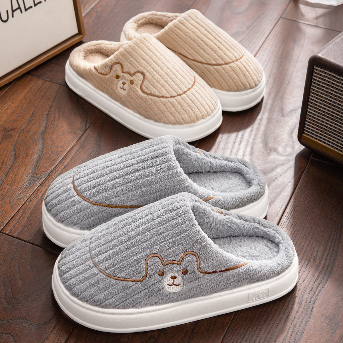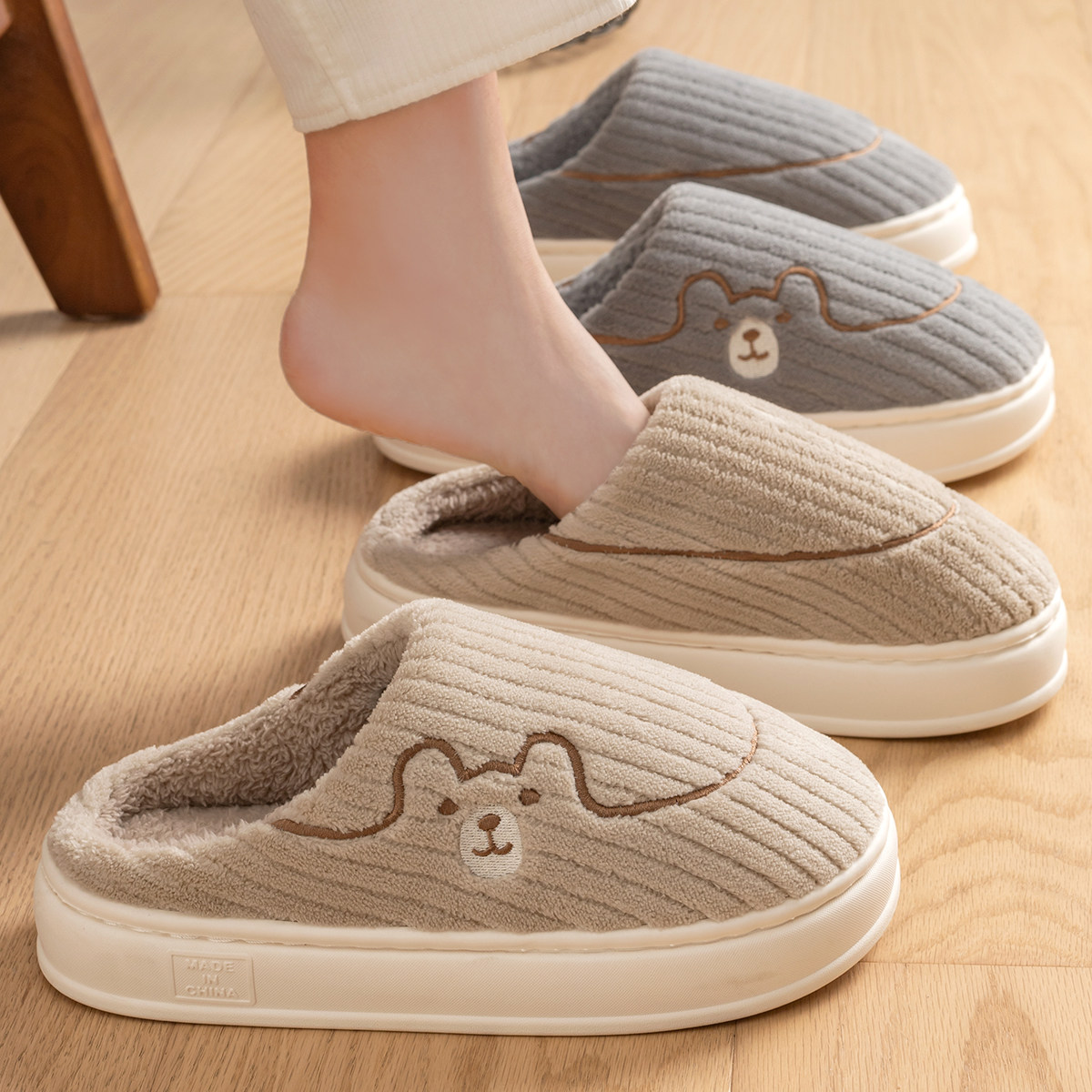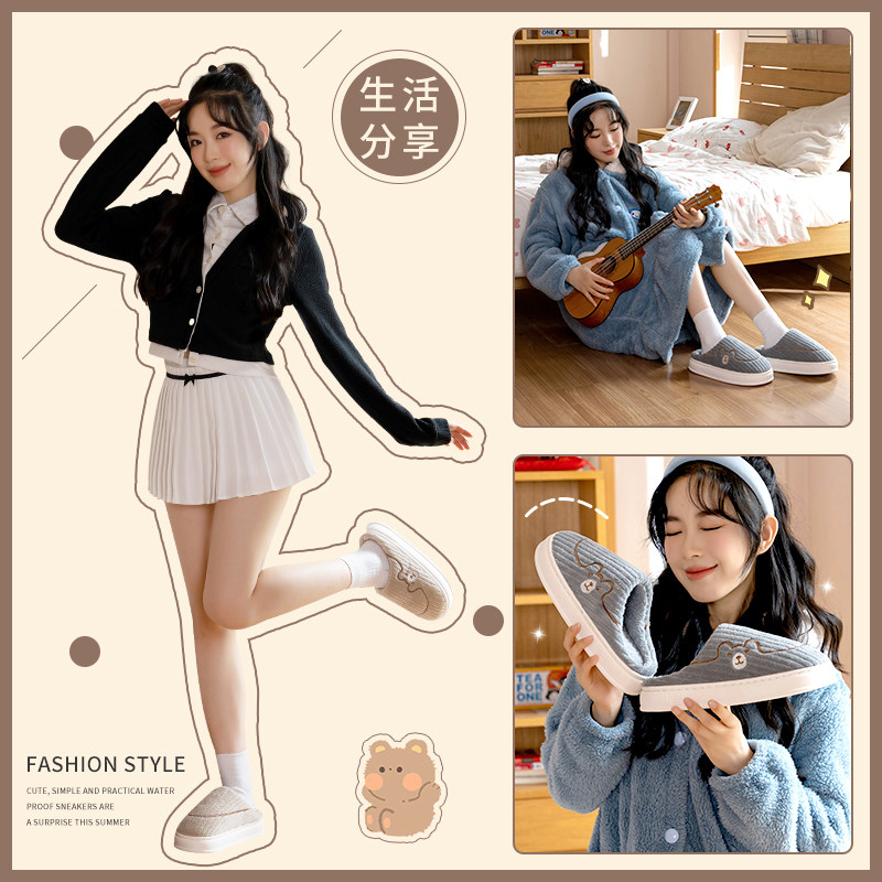 防滑防臭情侣款棉拖鞋秋冬季保暖