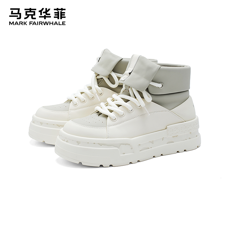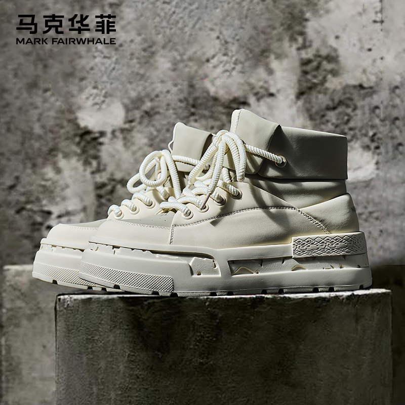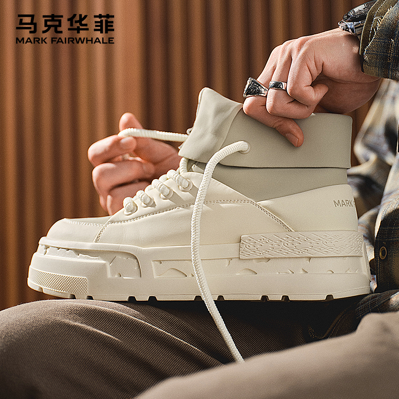 马克华菲高帮鞋2025新款男士休闲鞋板鞋增高运动简约小白鞋子男款
