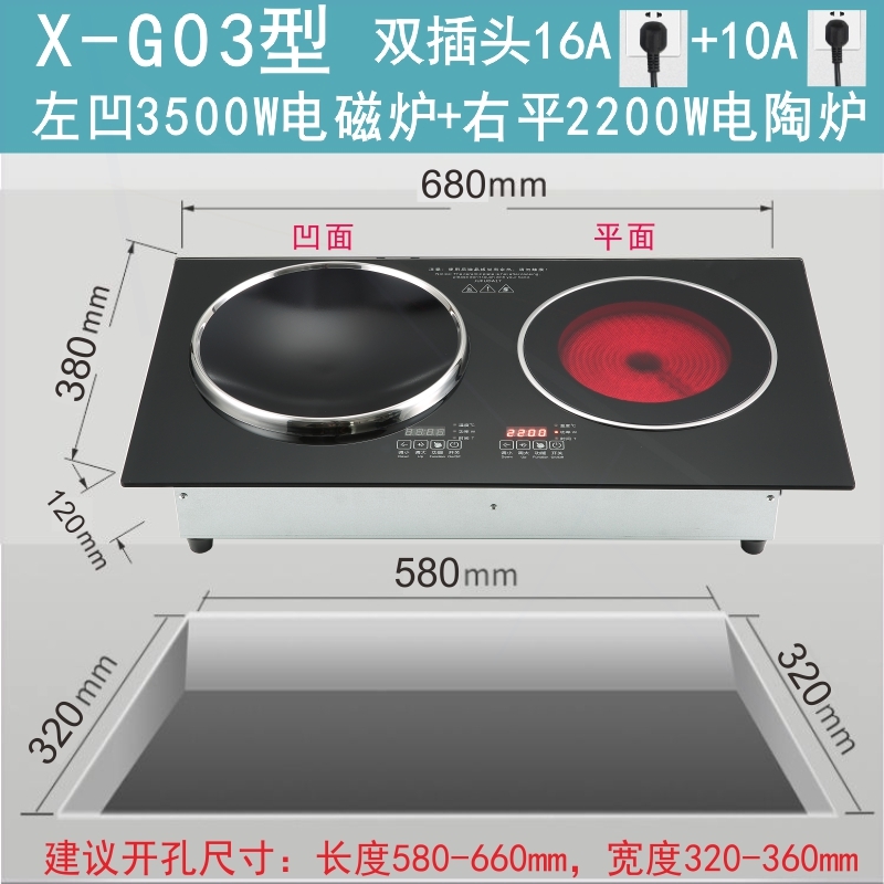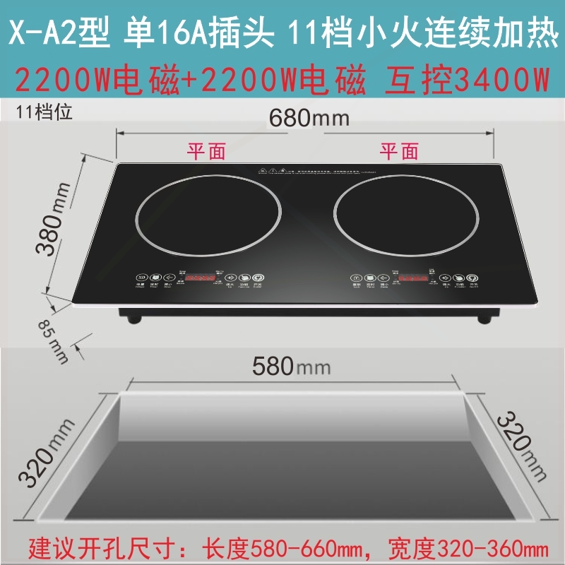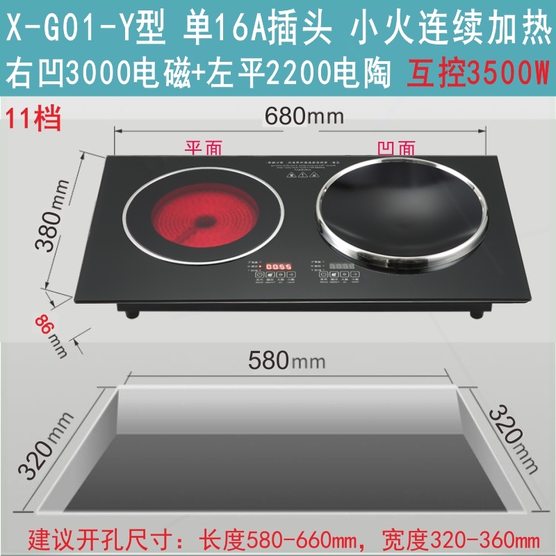炉小空间公寓双头凹槽电陶迷你双灶小开孔尺寸凹面嵌入式电磁炉双