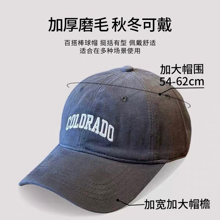 colorado帽子大头围磨毛工艺新款潮流字母棒球帽男女显脸小鸭舌帽