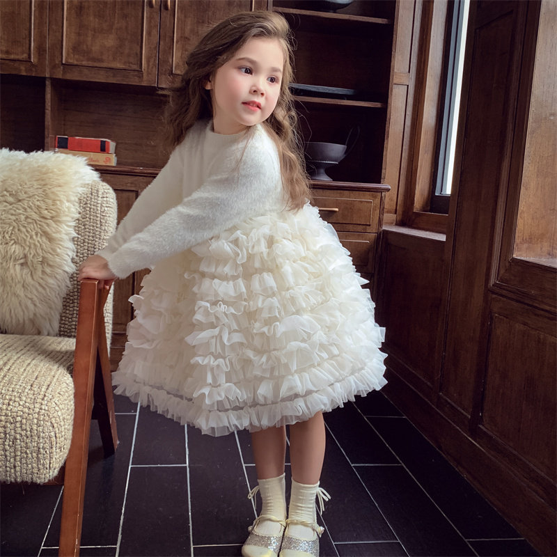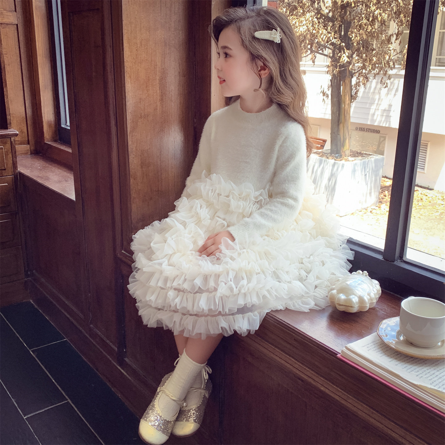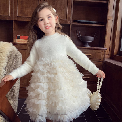 米米哈罗女童连衣裙冬装2025新款儿童网纱蓬蓬公主裙小女孩蛋糕裙