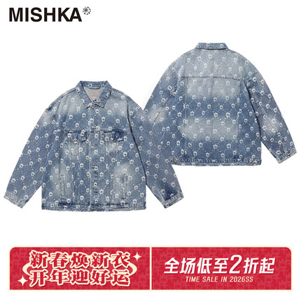 MISHKA大眼球美式高街潮牌复古机车重工夹克工装牛仔衣外套