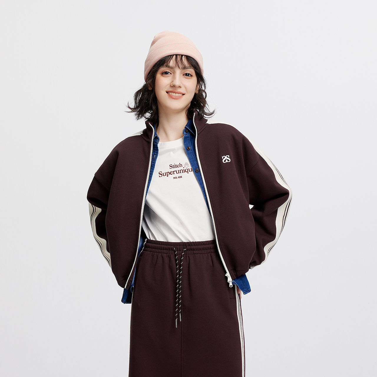 森马外套女抽绳学院风2025新款秋季立领肌理夹克运动风[商场同款]