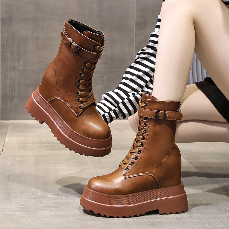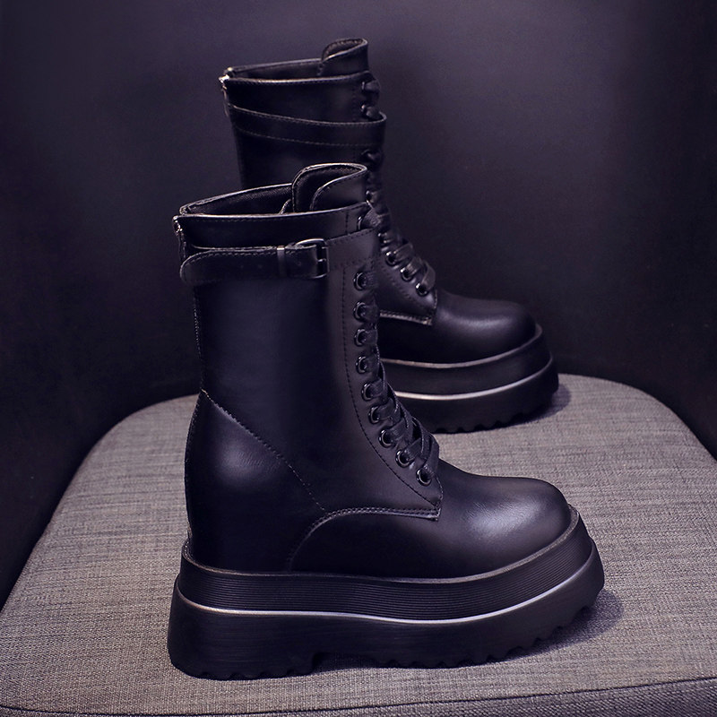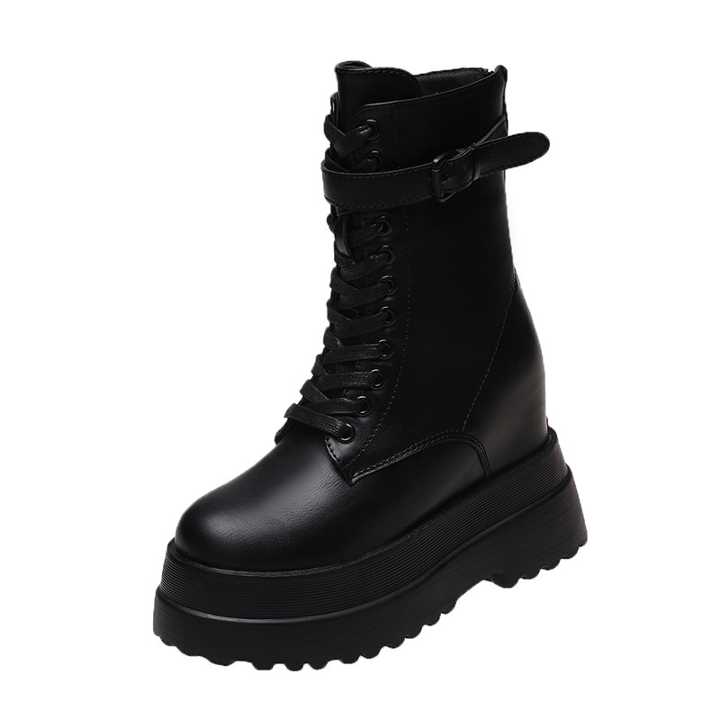内增高马丁靴女小个子2025年新款春季百搭英伦风复古厚底机车短靴
