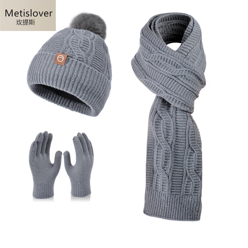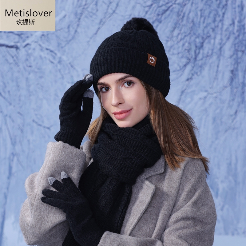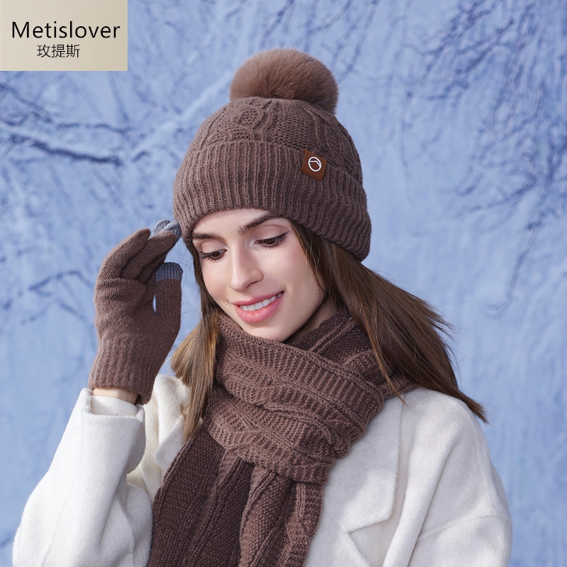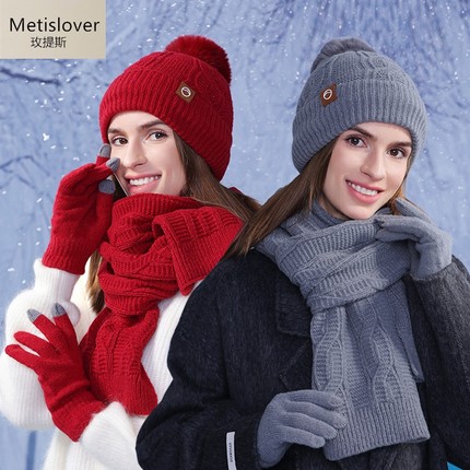 冬季加绒保暖帽子围巾套装女士百搭时尚针织帽防寒护耳套头毛线帽