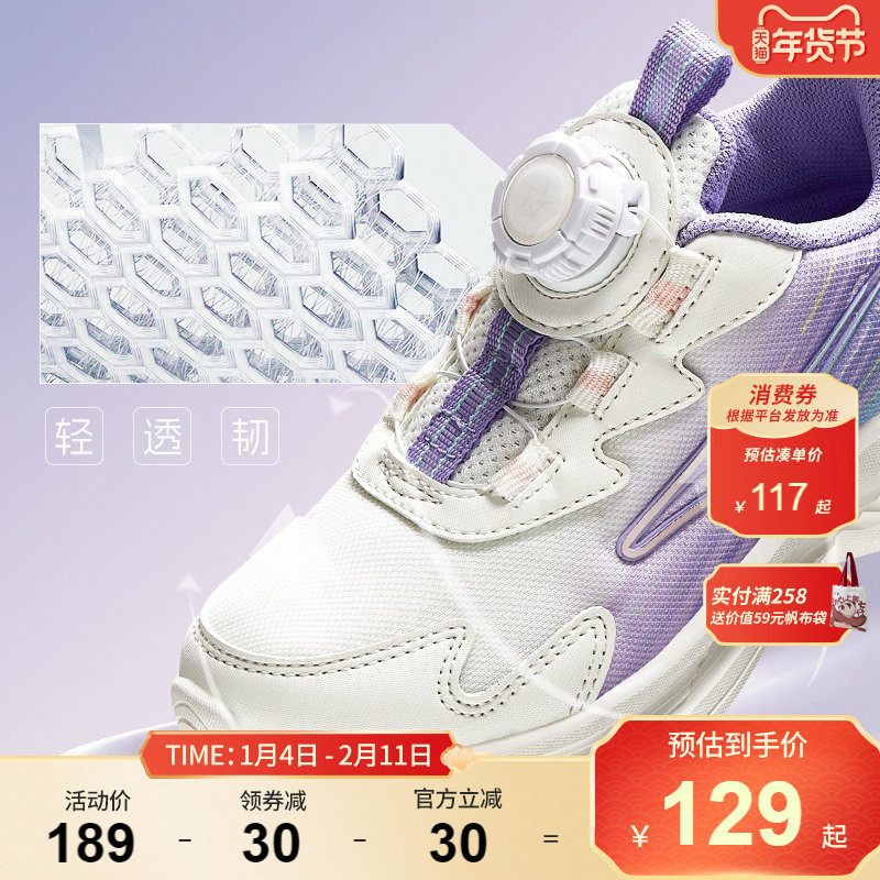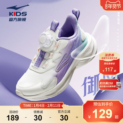 御风|鸿星尔克童鞋女童运动鞋儿童网面学生跑步鞋旋钮扣小童鞋子