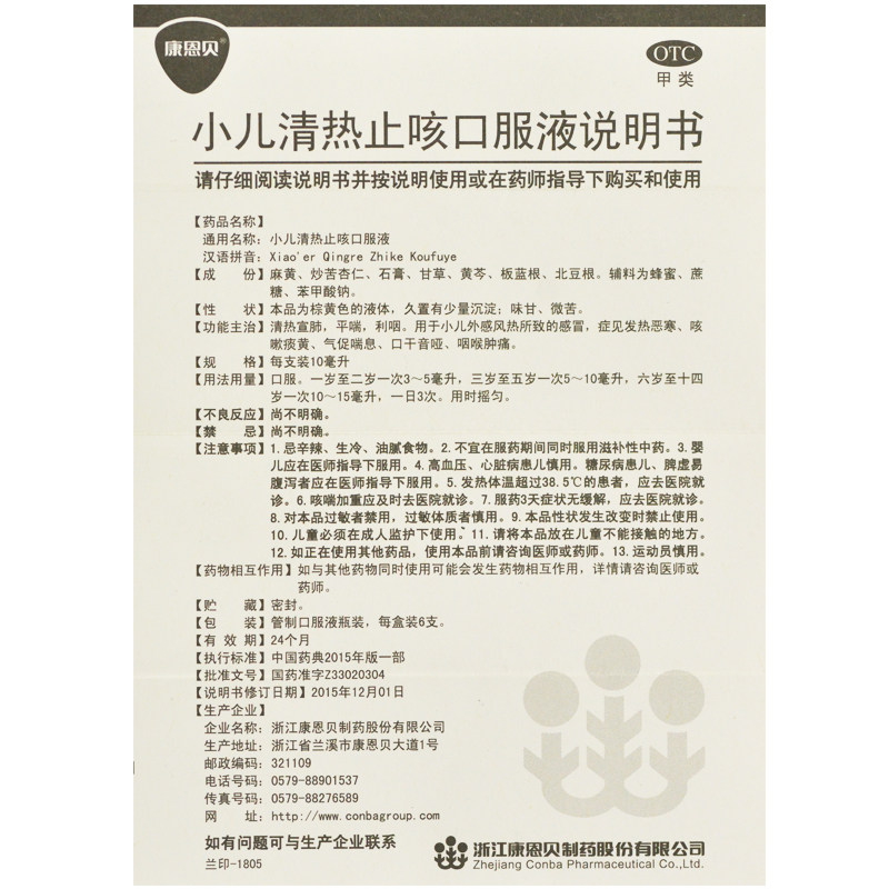 包邮】康恩贝小儿清热止咳口服液10ml*6支/感冒咳嗽痰黄咽喉肿痛
