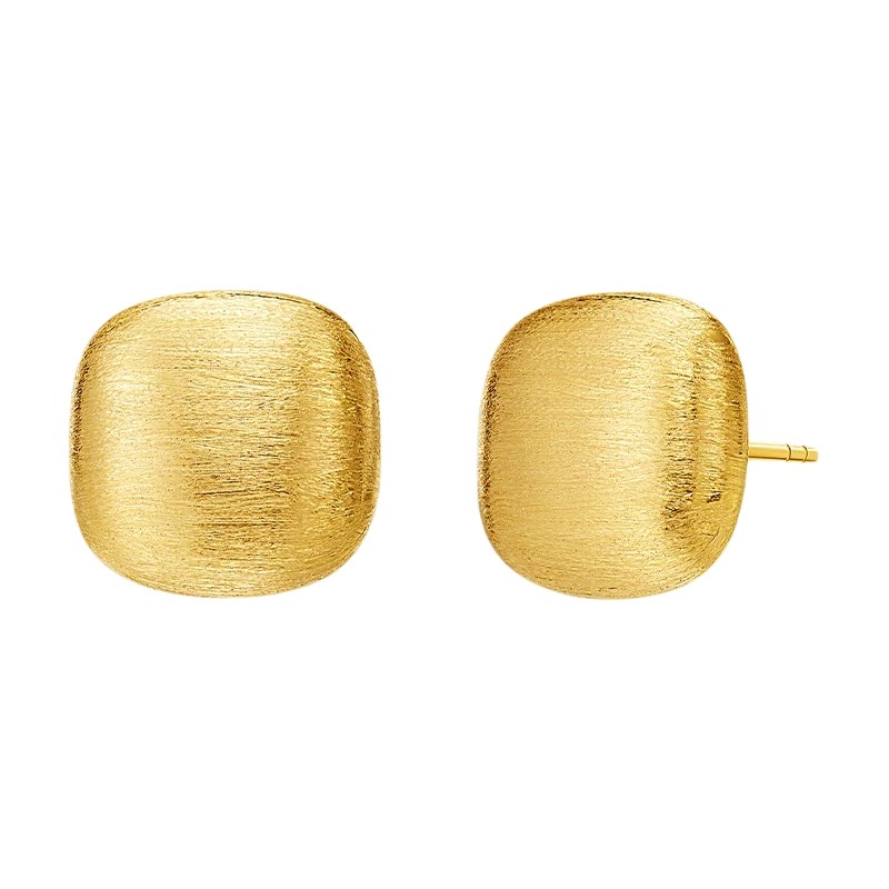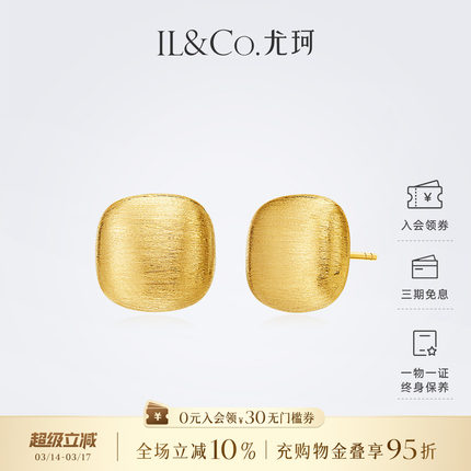 ILCO尤珂 18K金耳饰素金拉丝工艺金豆豆方形耳钉简约时尚气质送礼