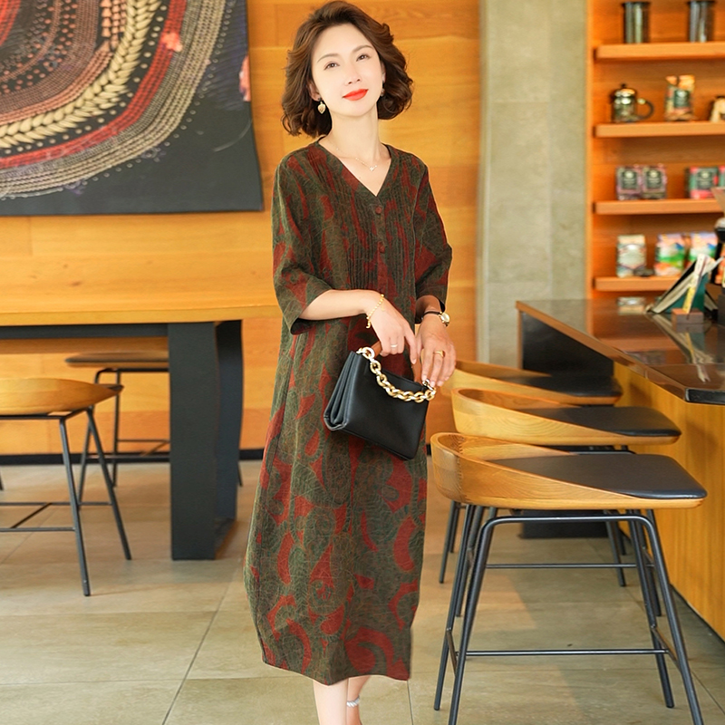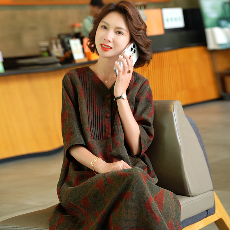 中年妈妈高端大牌真丝连衣裙2025年夏季新款桑蚕丝香云纱显瘦女裙