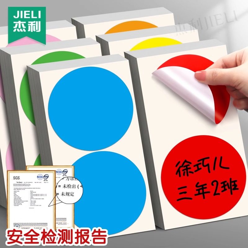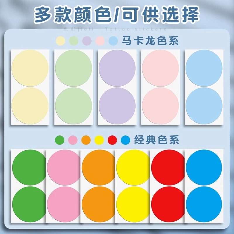 大号马卡龙圆形贴纸名字手写姓名贴彩色圆点即时不干胶标签幼儿园衣服自粘儿童数字号码编号心形便利贴大尺寸