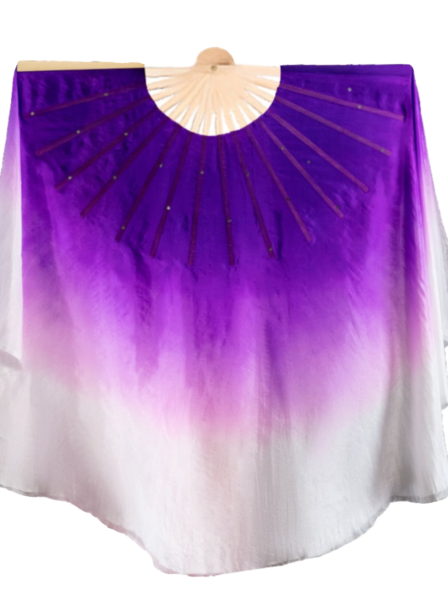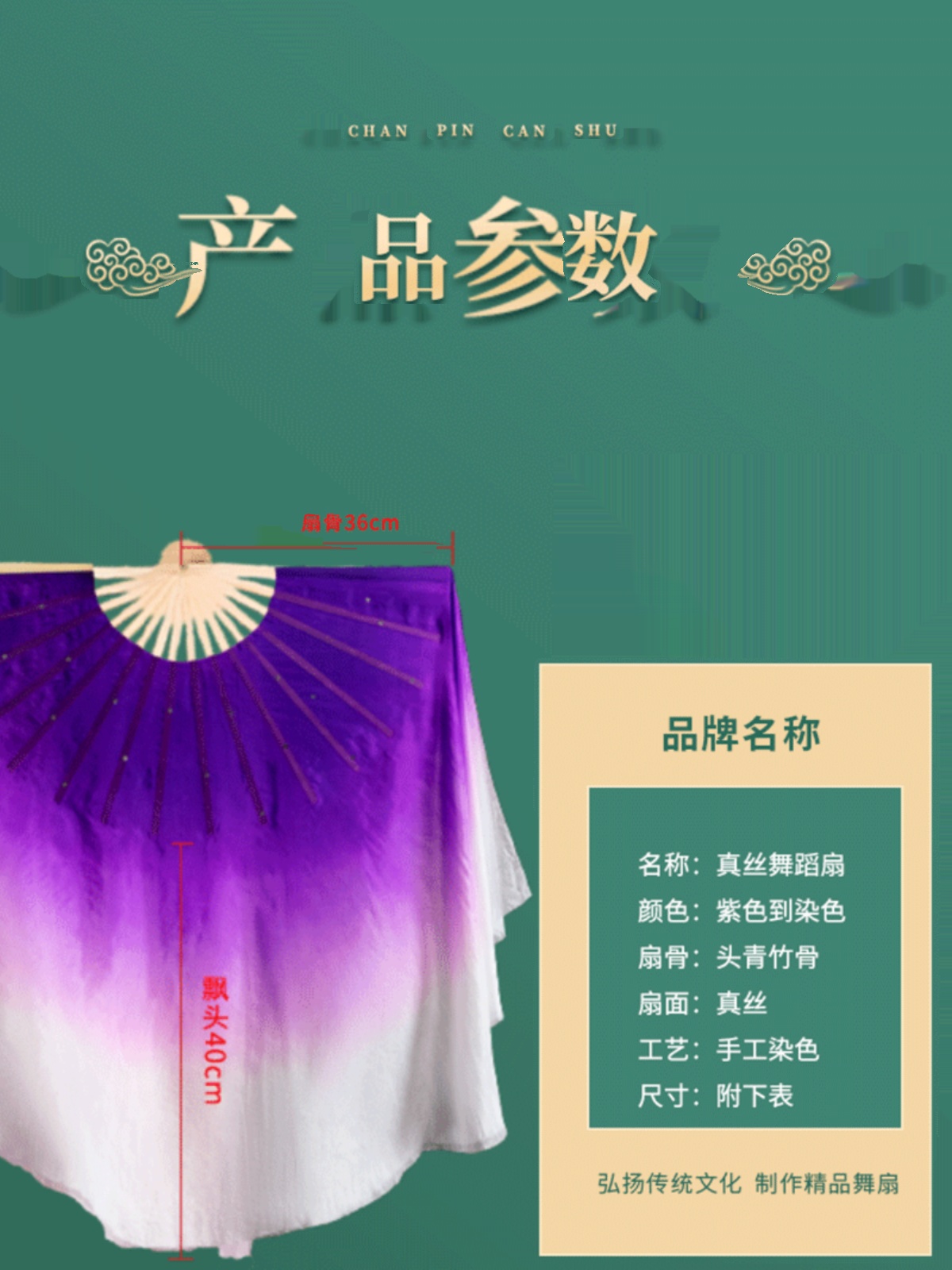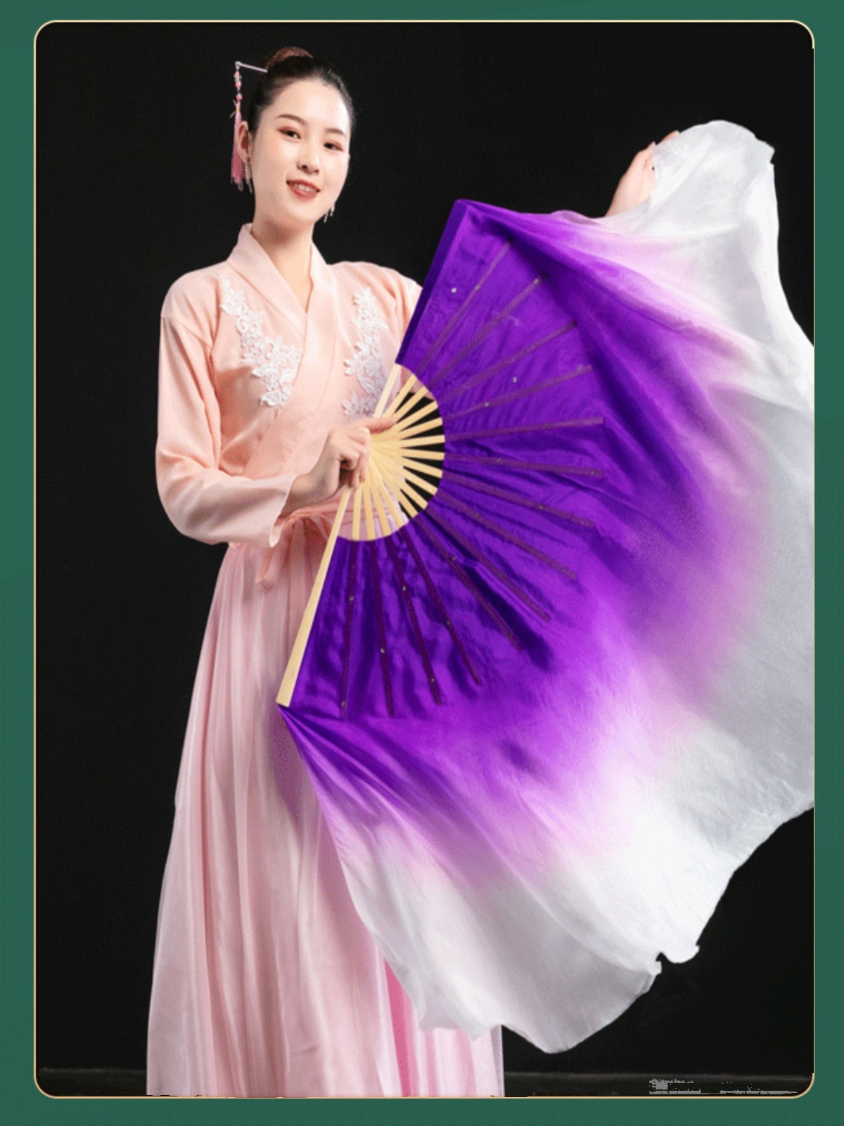 秧歌双面广场加长渐变色胶州中国风古典紫色跳舞扇子真丝舞蹈扇子