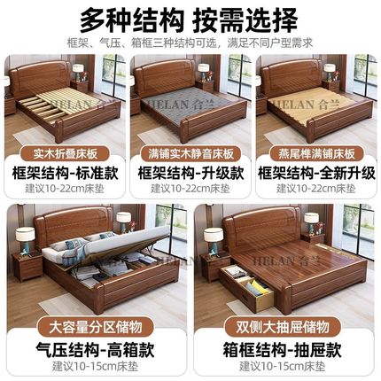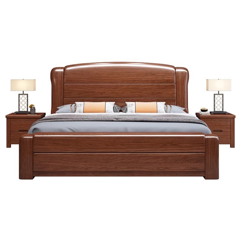 胡桃木实木床双人床中式1.5现代简约1.8米经济型高箱储物主卧婚床