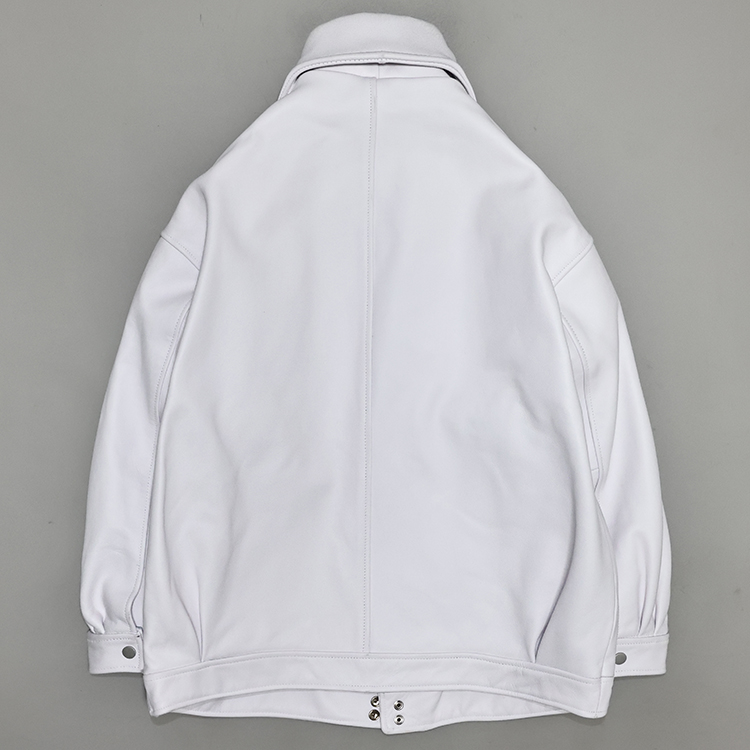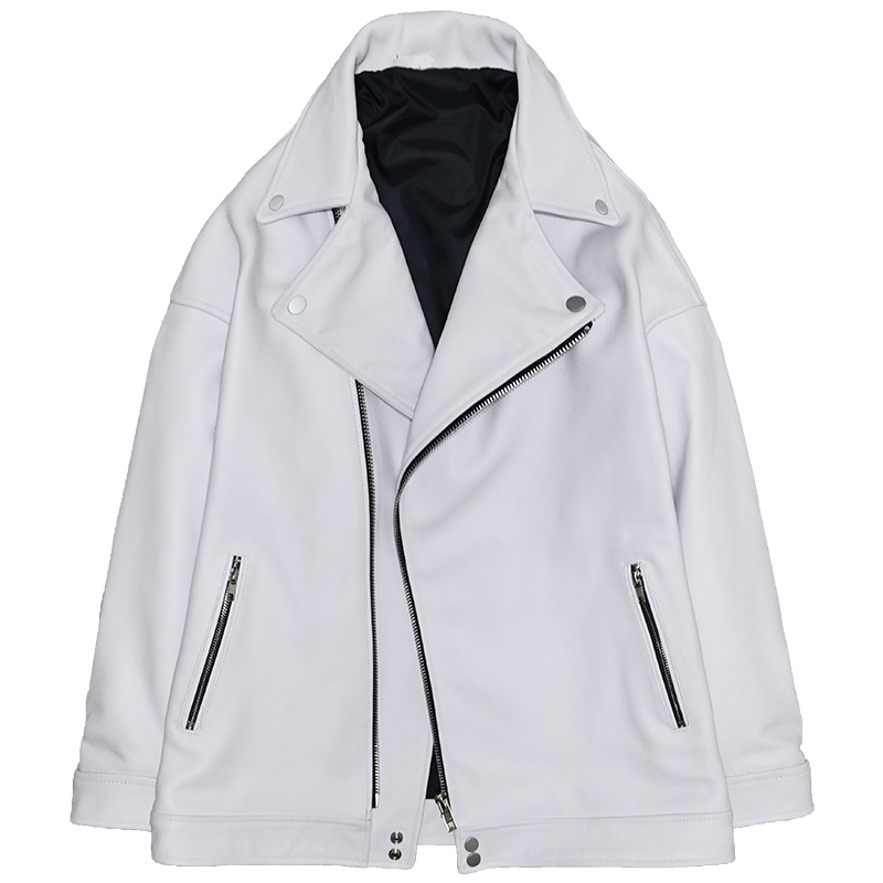 白色厚实挺阔头层牛皮真皮皮衣男女休闲廓版宽松机车夹克外套鲁