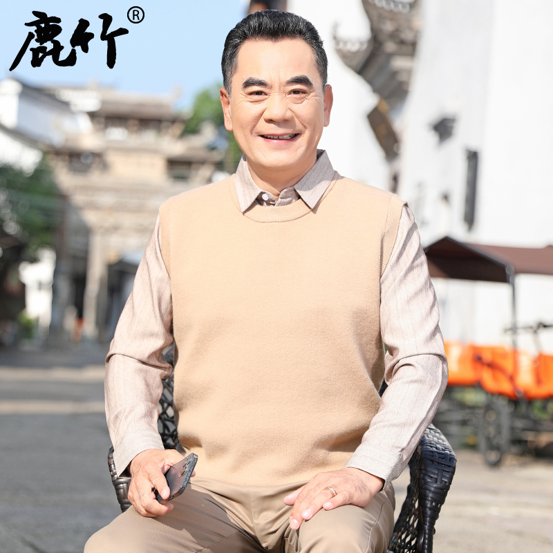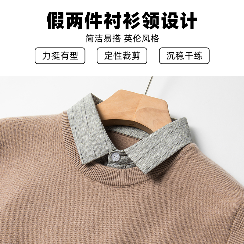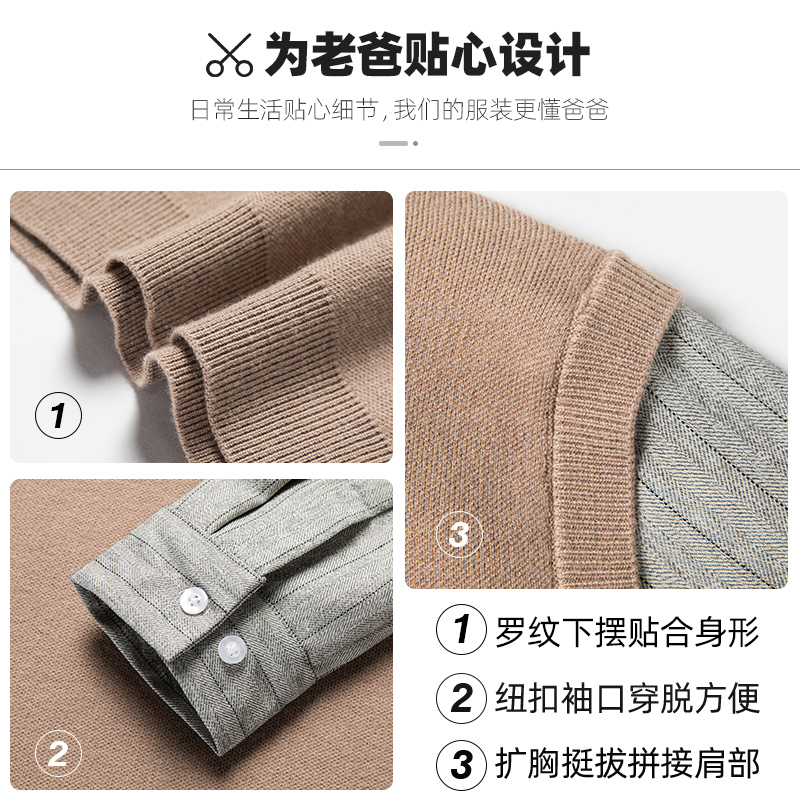 男士商务休闲打底衫中年爸爸春秋季假两件毛衣中老年男装针织上衣