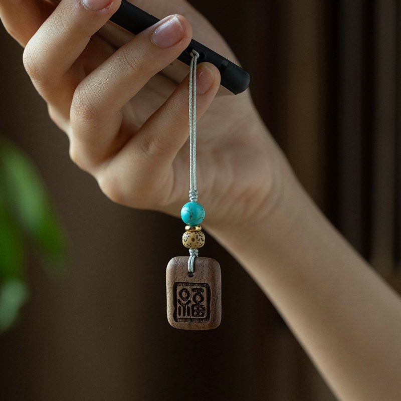 天然胡桃木汽车钥匙扣挂件血檀木手机链挂饰坠定制刻字木质牌男女