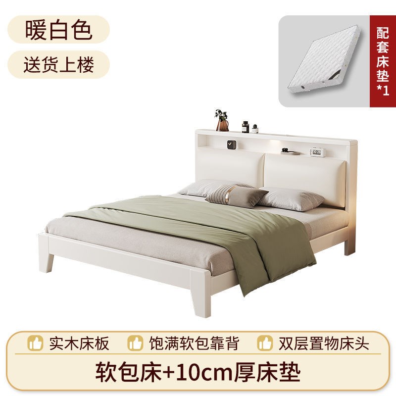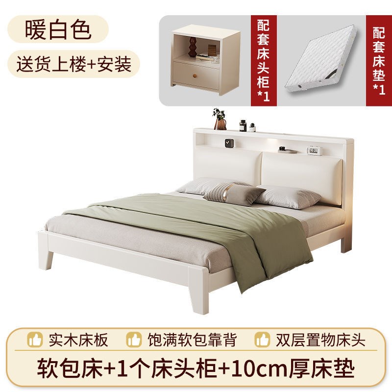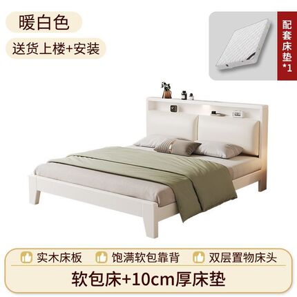 双人床小户型卧室1.2m简易单人床架现代简约实木床1.5米家用1.8米