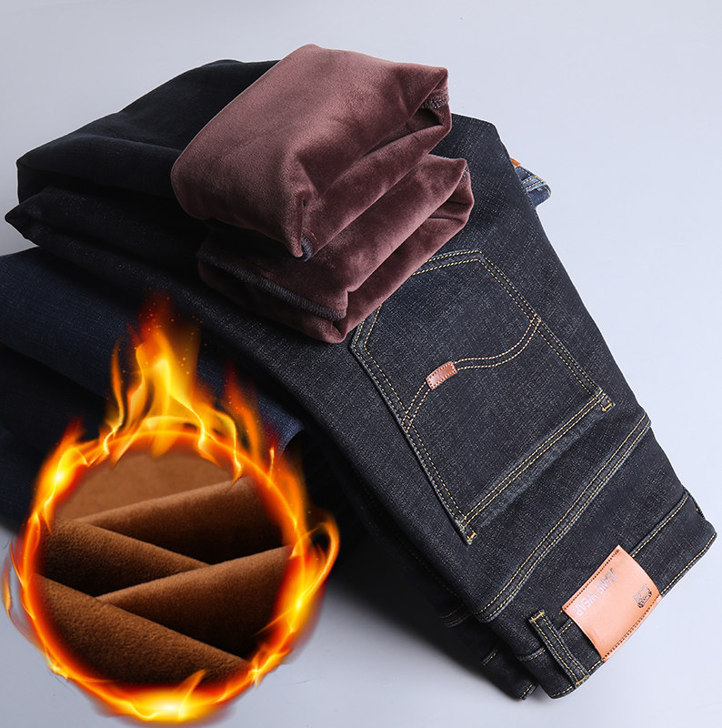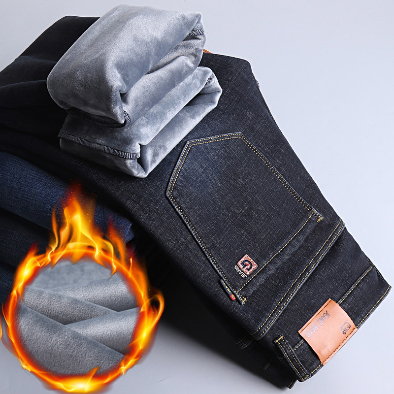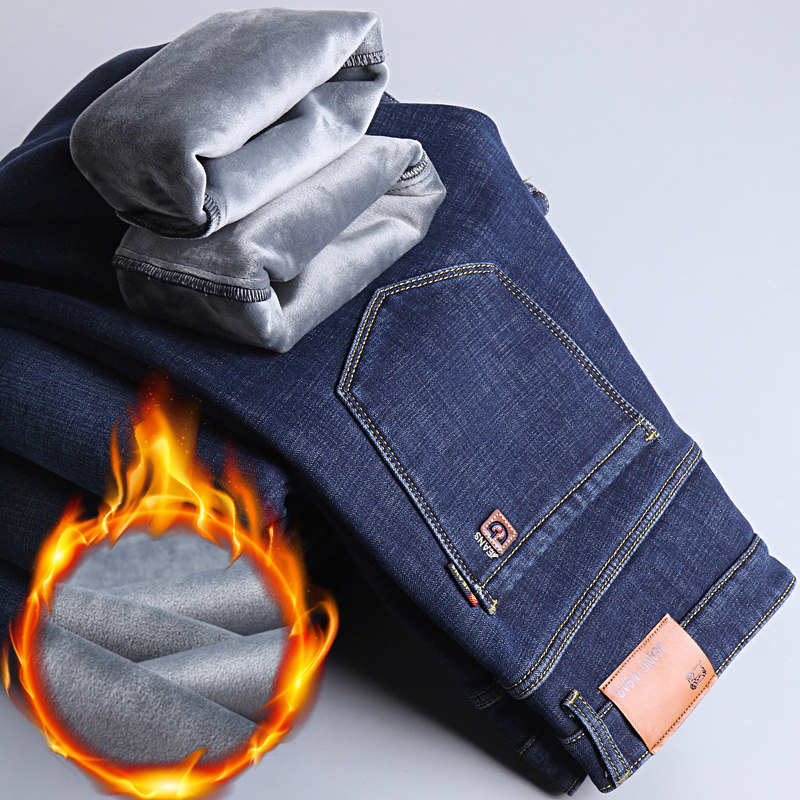 直筒加肥加大码加绒加厚牛仔裤男