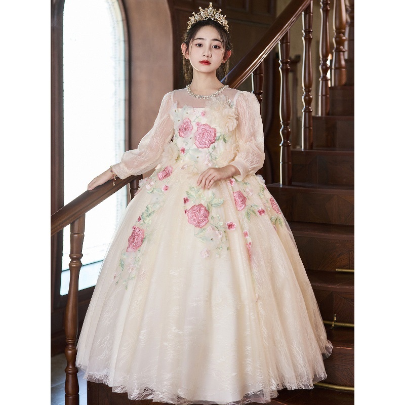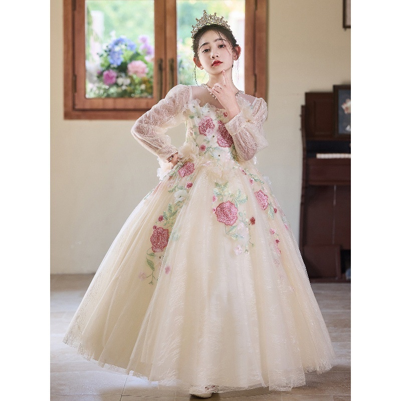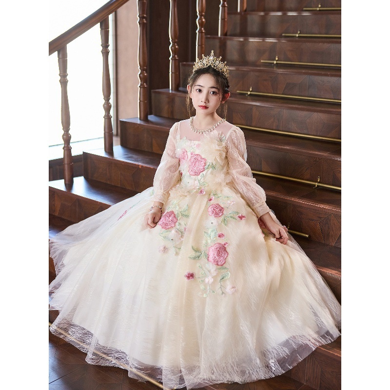 女童礼服秋长袖高端花童婚礼生日公主裙主持人走秀钢琴演出