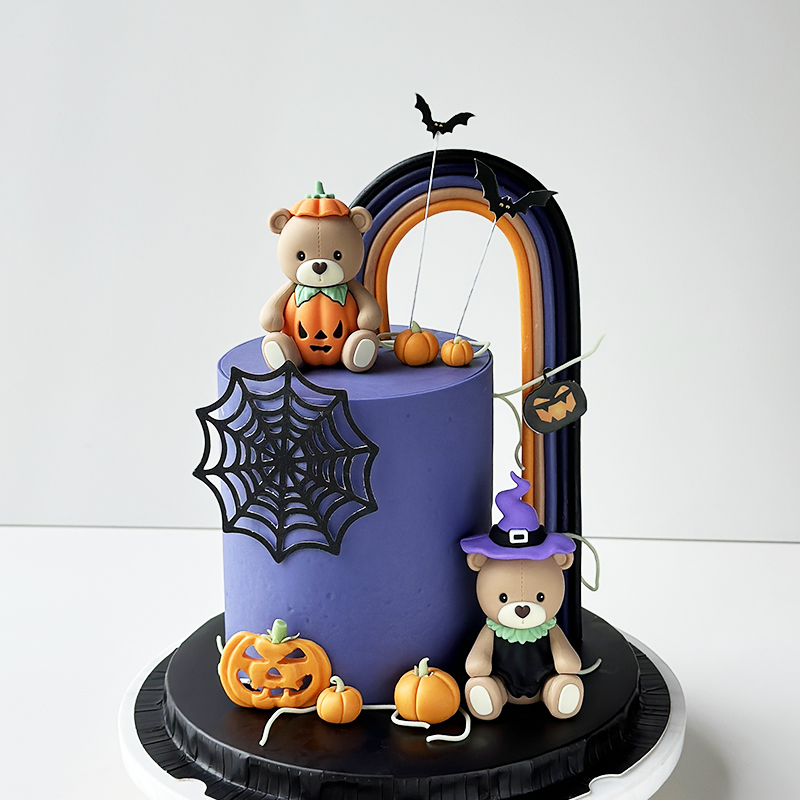 万圣节蛋糕装饰卡通南瓜巫师小熊玩偶摆件彩虹拱门蜘蛛网南瓜插牌