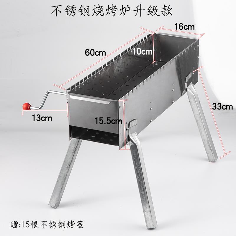 户外不锈钢烧烤架手动旋转烧烤炉木炭烤肉烧烤用具半自动便携家用