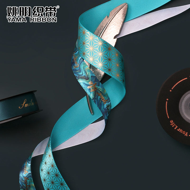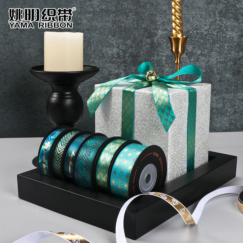 姚明织带烘焙蛋糕礼品礼盒包装带烫金丝带绸带孔雀蓝鲜花装饰彩带