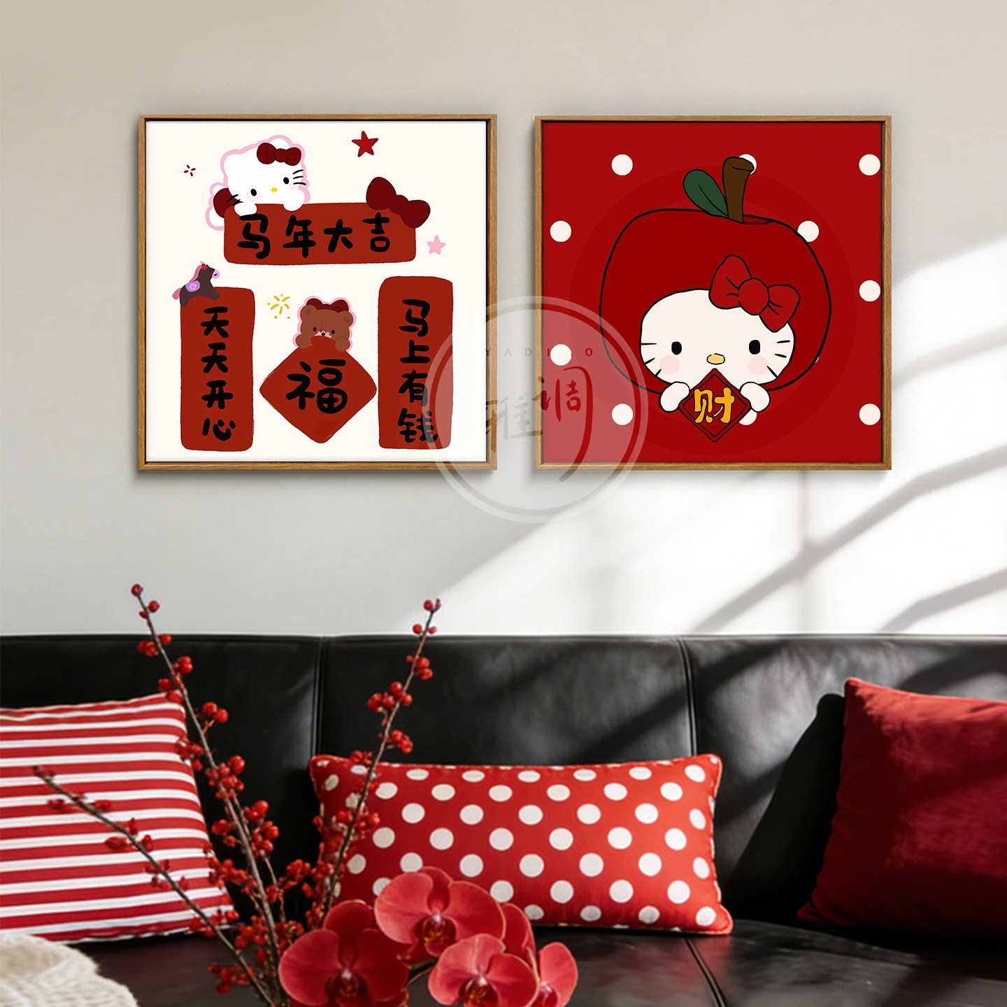 雅调可爱kt猫diy新年数字油画