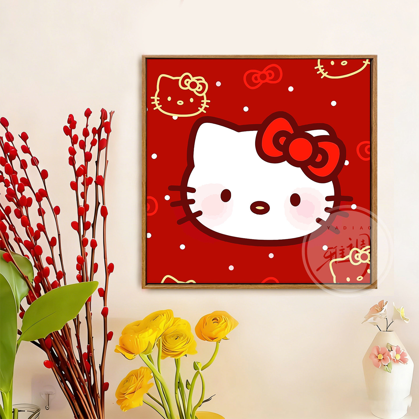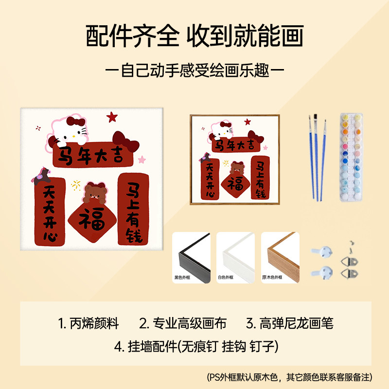 新年kt猫DIY数字油画手绘材料包治愈解压卡通可爱温馨卧室装饰画