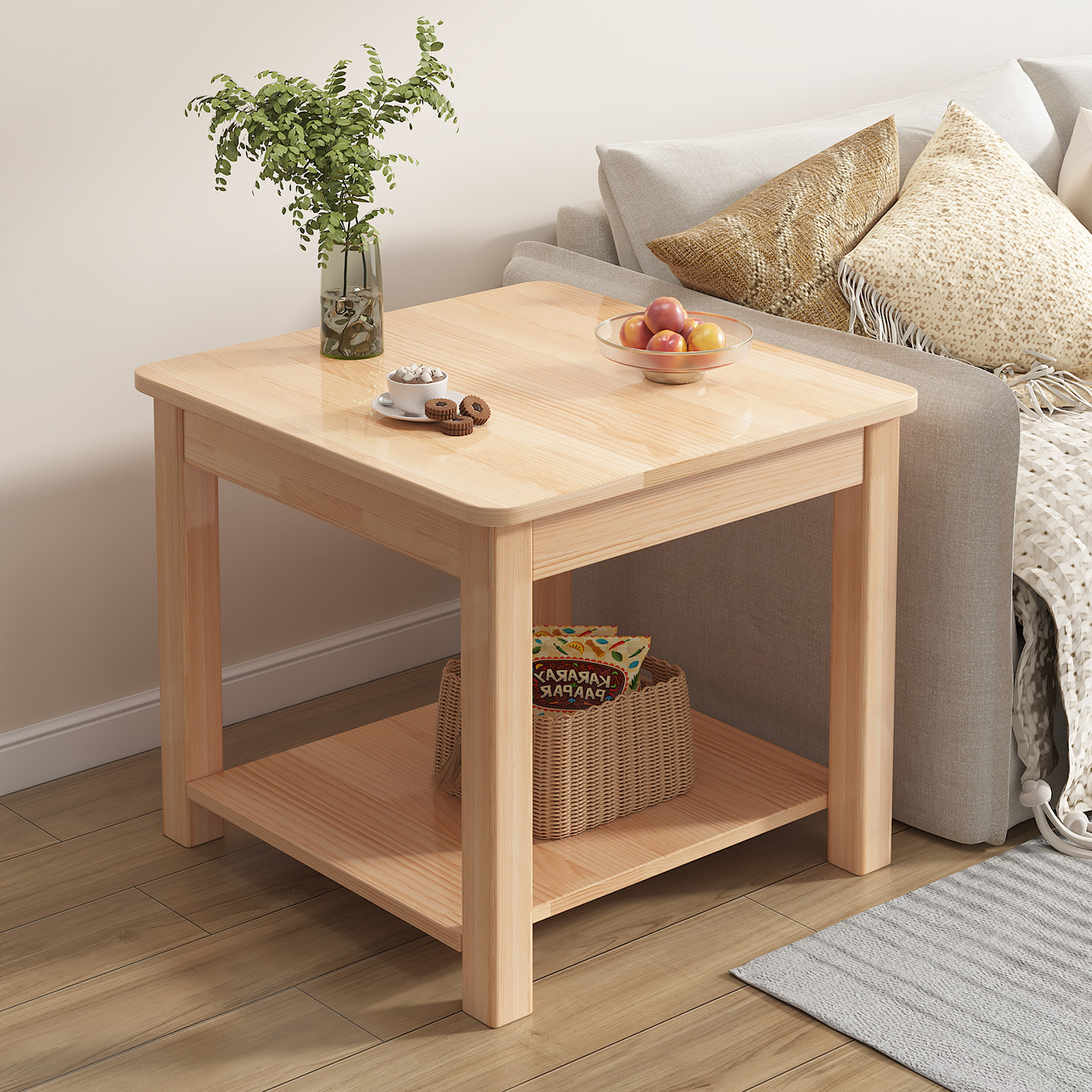 实木橡胶木边几客厅角几沙发边柜实木方桌阳台简约桌子小户型茶几