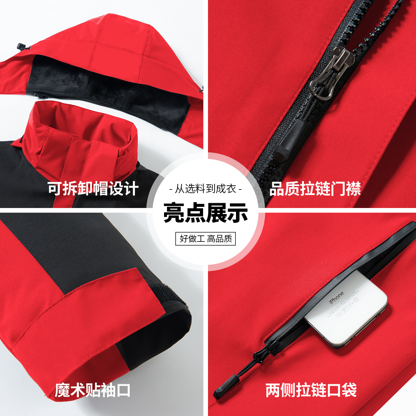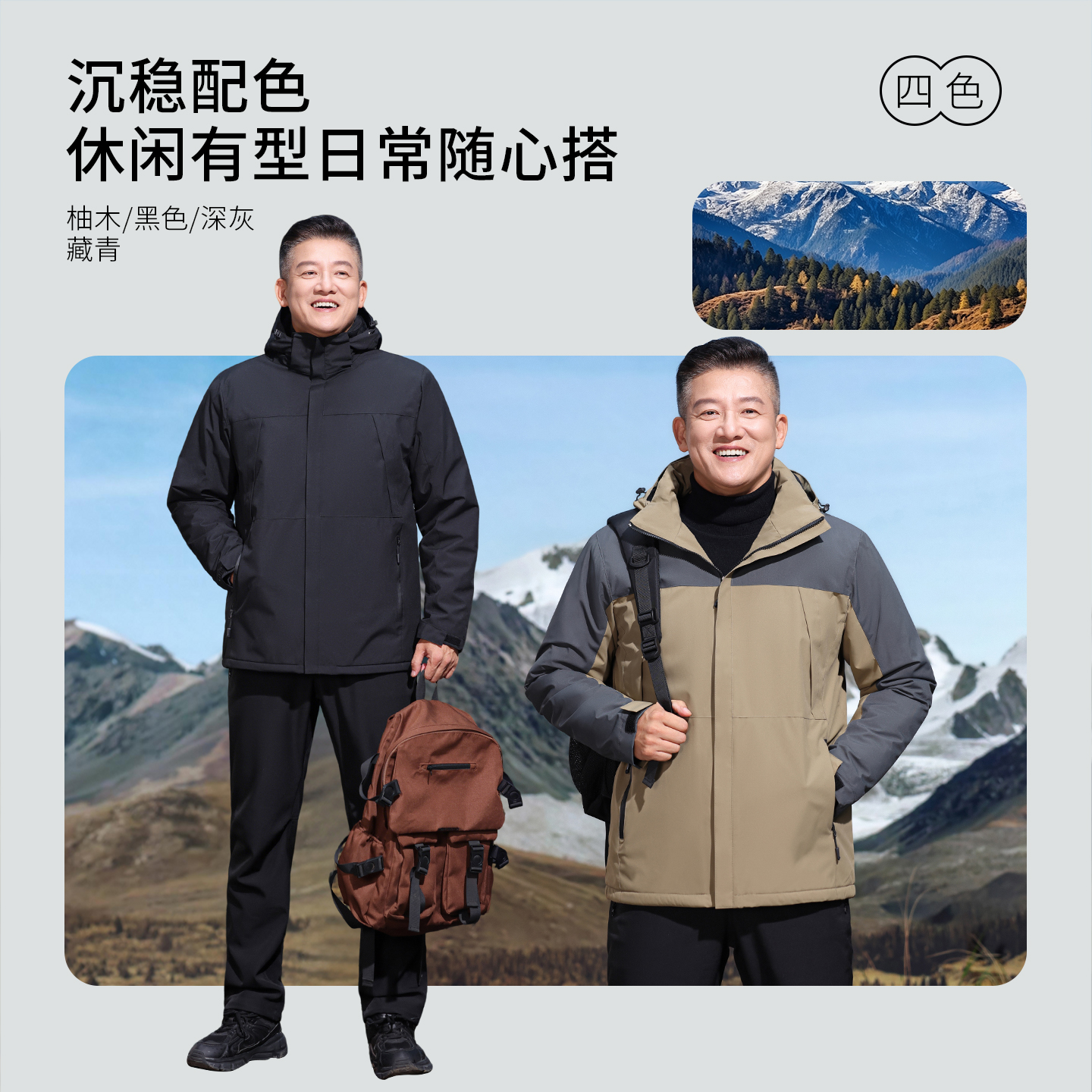新款爸爸外套加绒加厚中年男士可卸连帽户外三防冲锋衣中老年男装