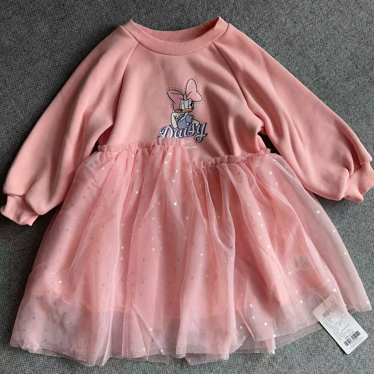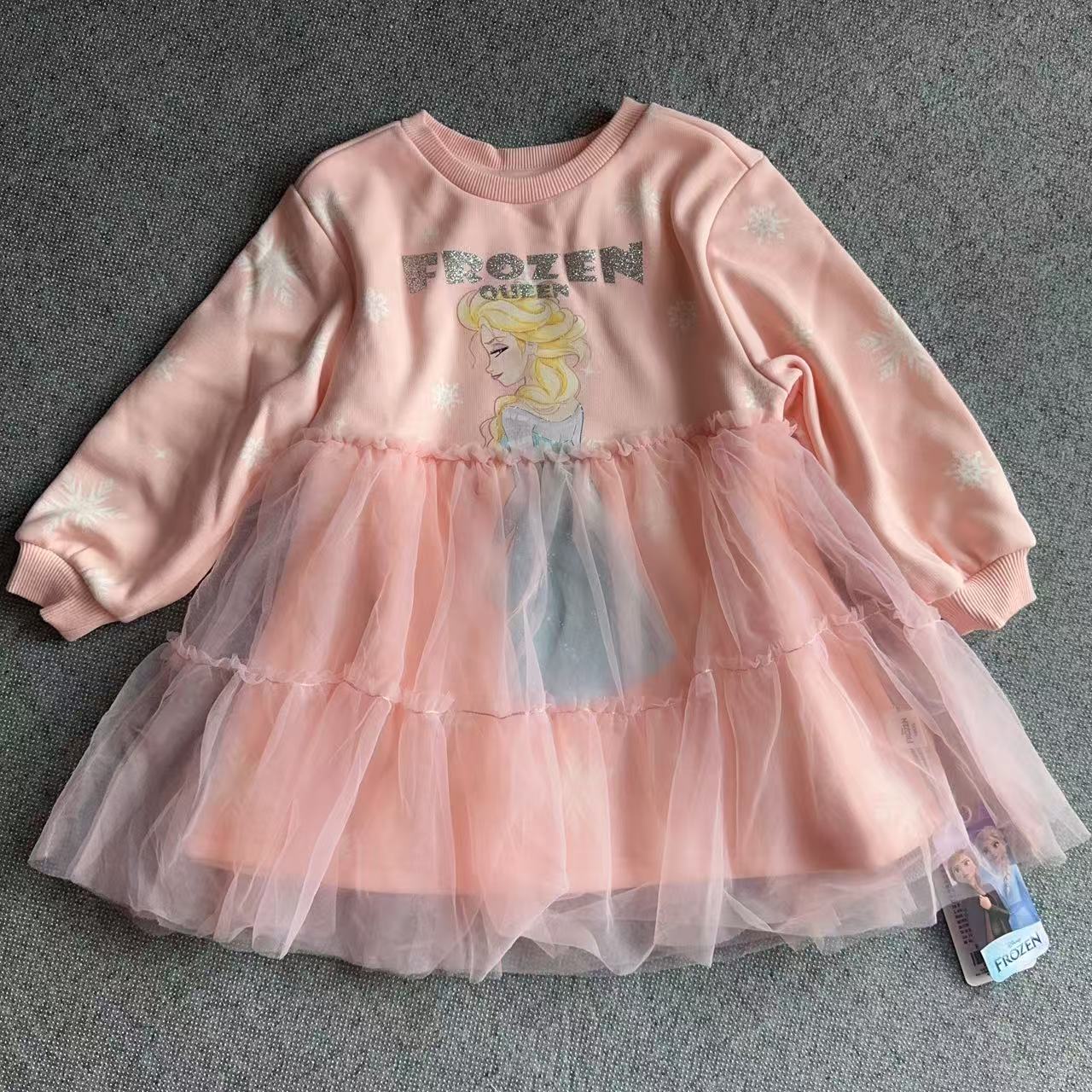 外单超美秋冬款女童中大童90-160冰雪公主加绒网纱拼接连衣裙裙子