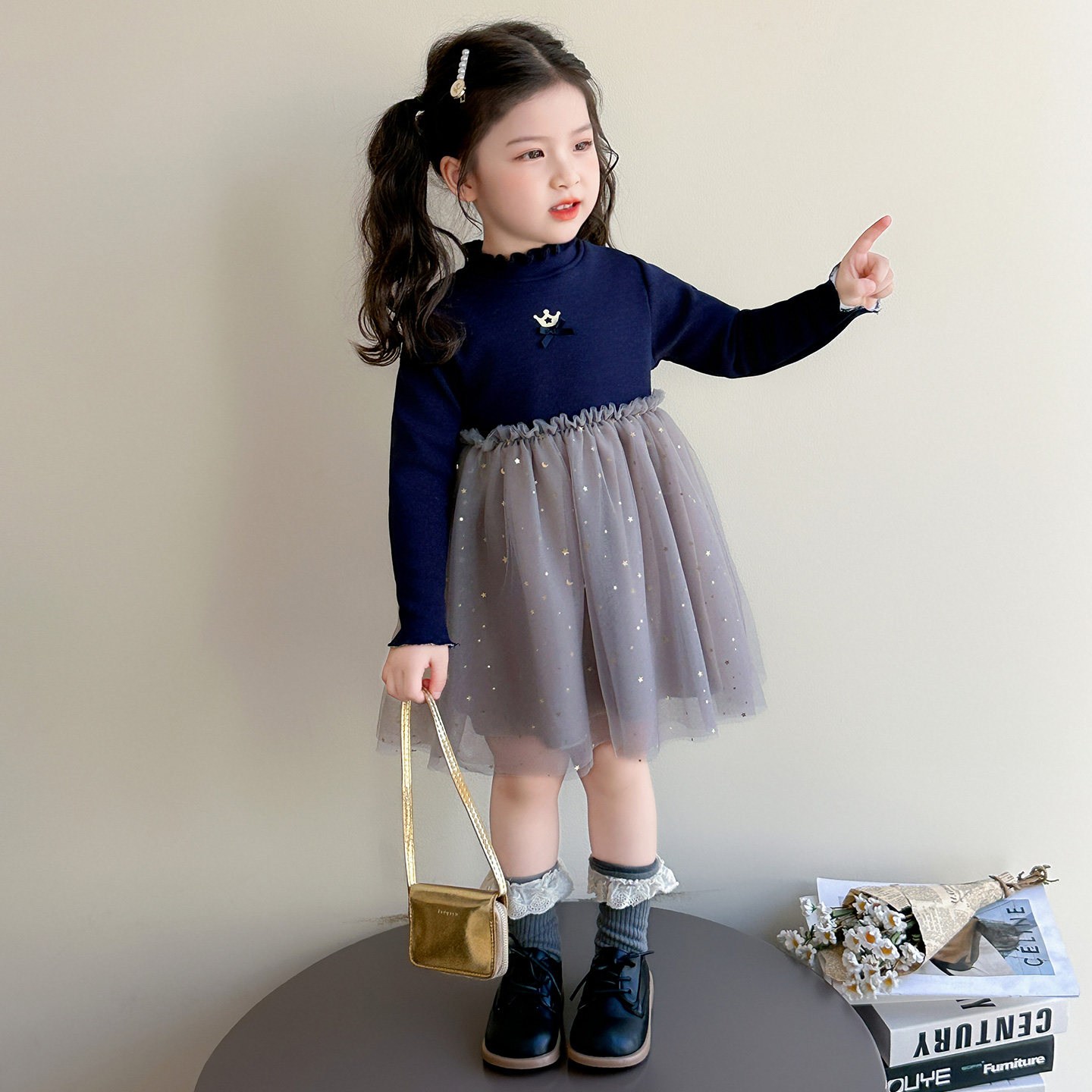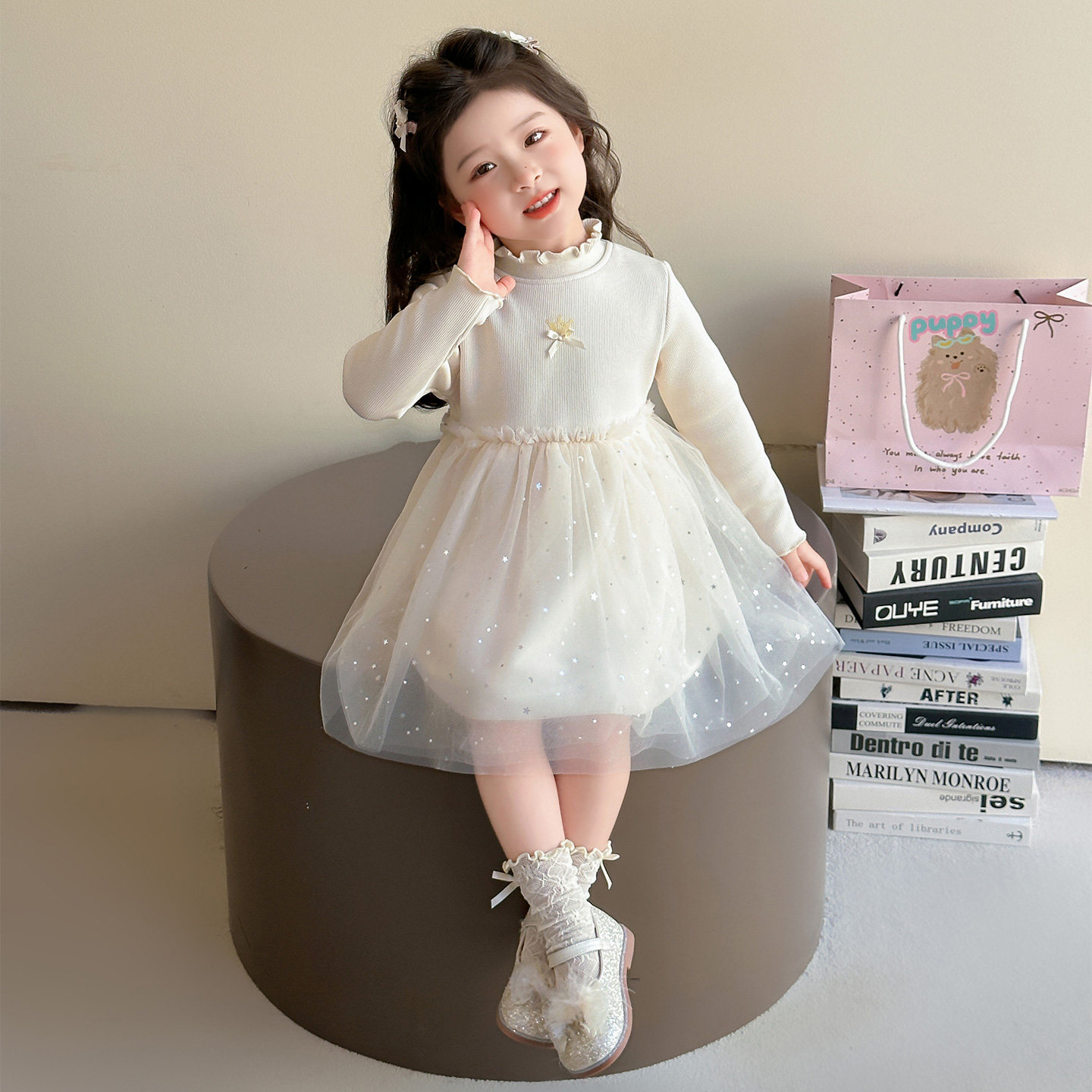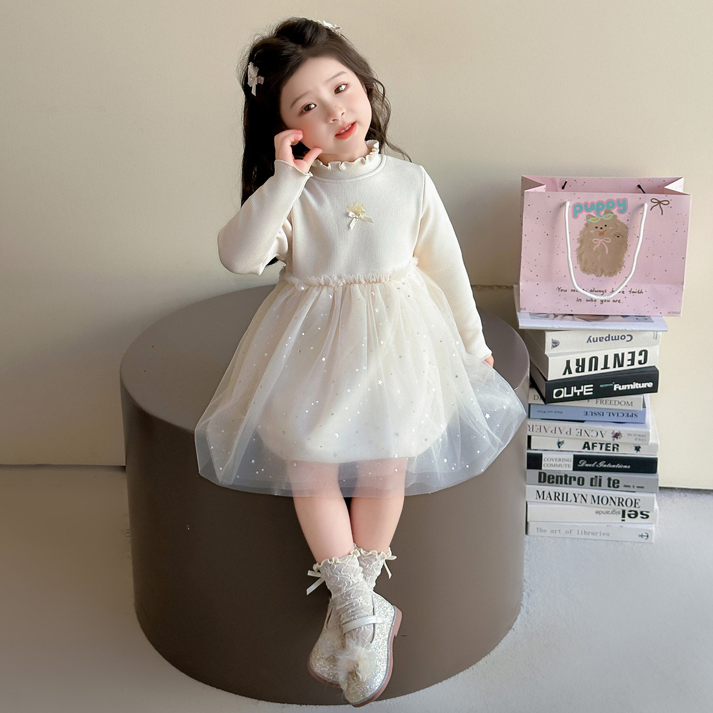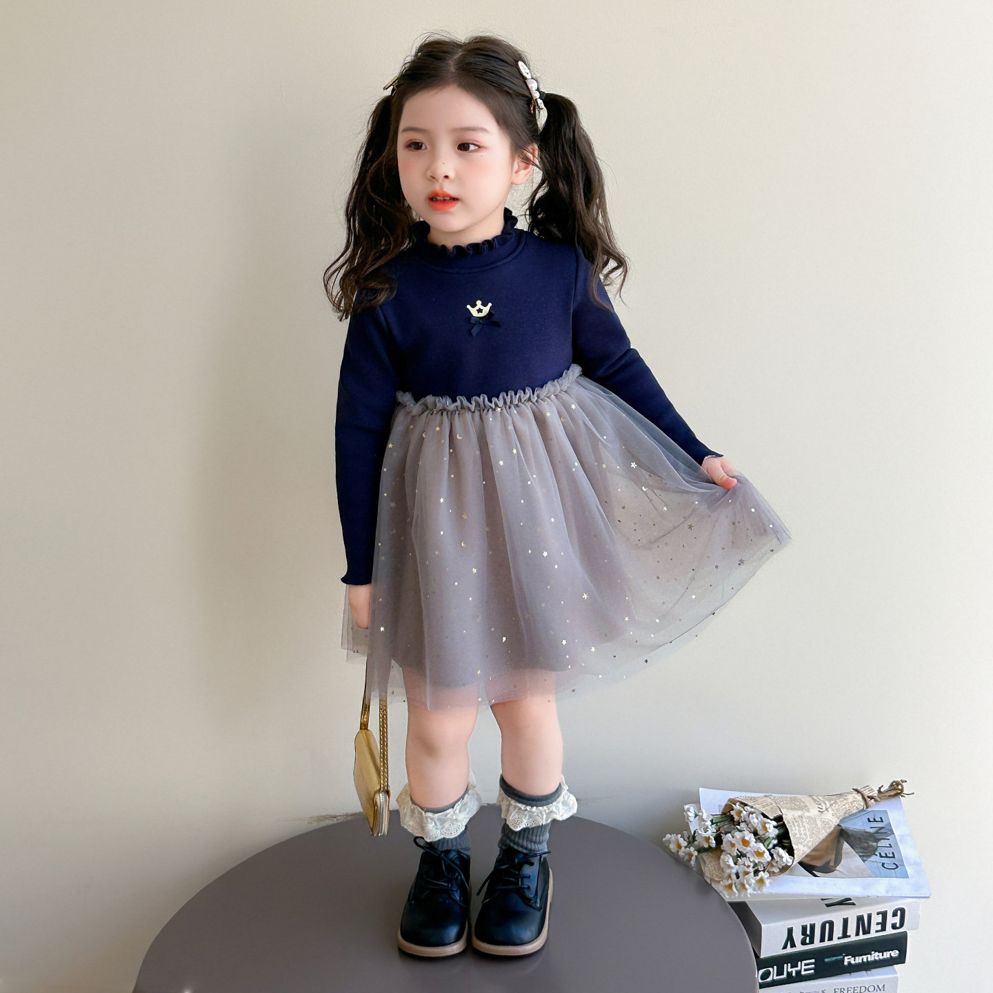 女童加绒连衣裙秋冬2025新款儿童洋气加厚网纱公主裙冬装宝宝裙子