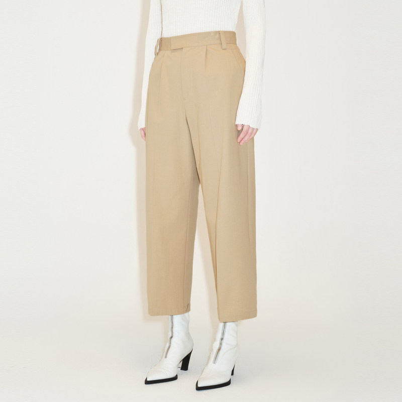 LESS时尚裤子女简约宽松休闲高腰七分直筒裤2M0E12550