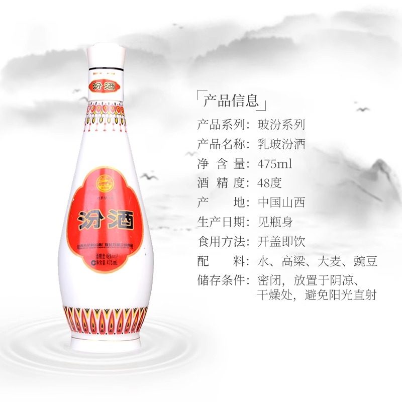 汾酒山西杏花村乳玻汾清香型白酒48度475ml*6瓶纯粮酒非原箱装