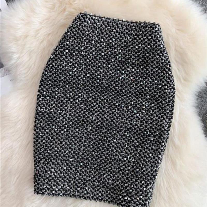 包臀裙半身裙女春秋百搭新款裙子修身一步裙大码短裙亮片弹力包裙