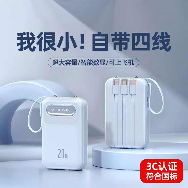 3C认证2025新款充电宝快充大容量20000毫安超薄小巧便携迷你移动电源自带线官方正品旗舰店手机通用可上飞机