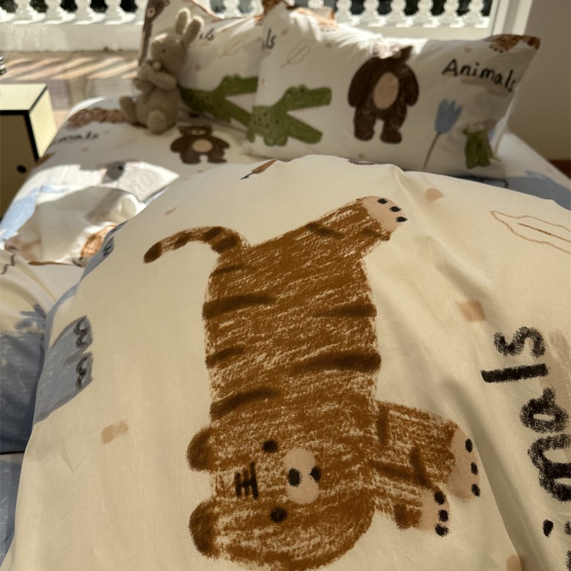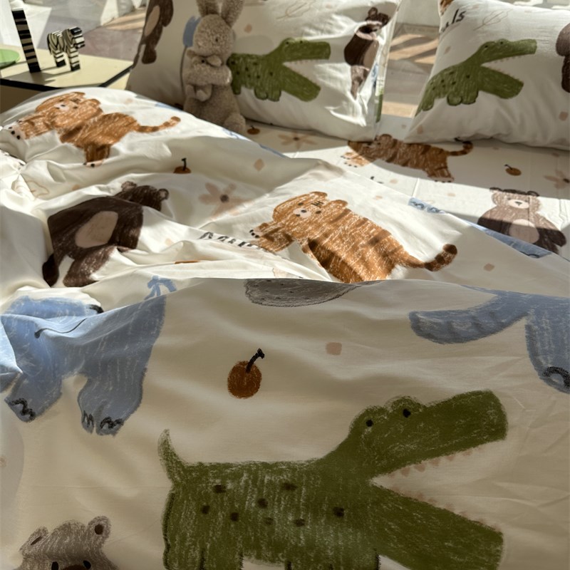 童趣涂鸦动物园床上四件套1.5m1.8米公寓全棉床单被套三件套