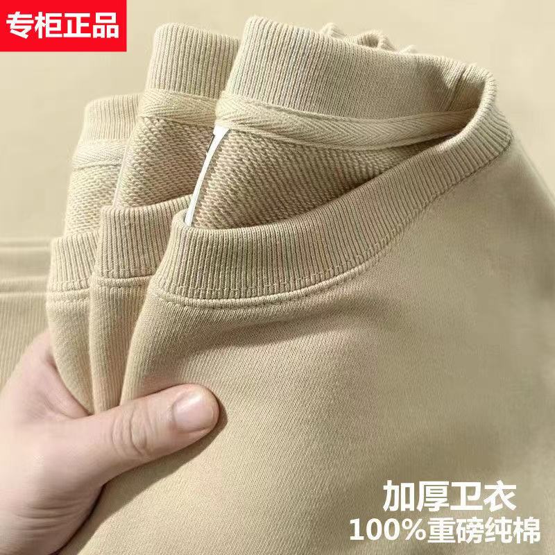 急处理100纯棉卫衣毛圈男女2025春秋款圆领宽松正肩长袖T恤打底衫
