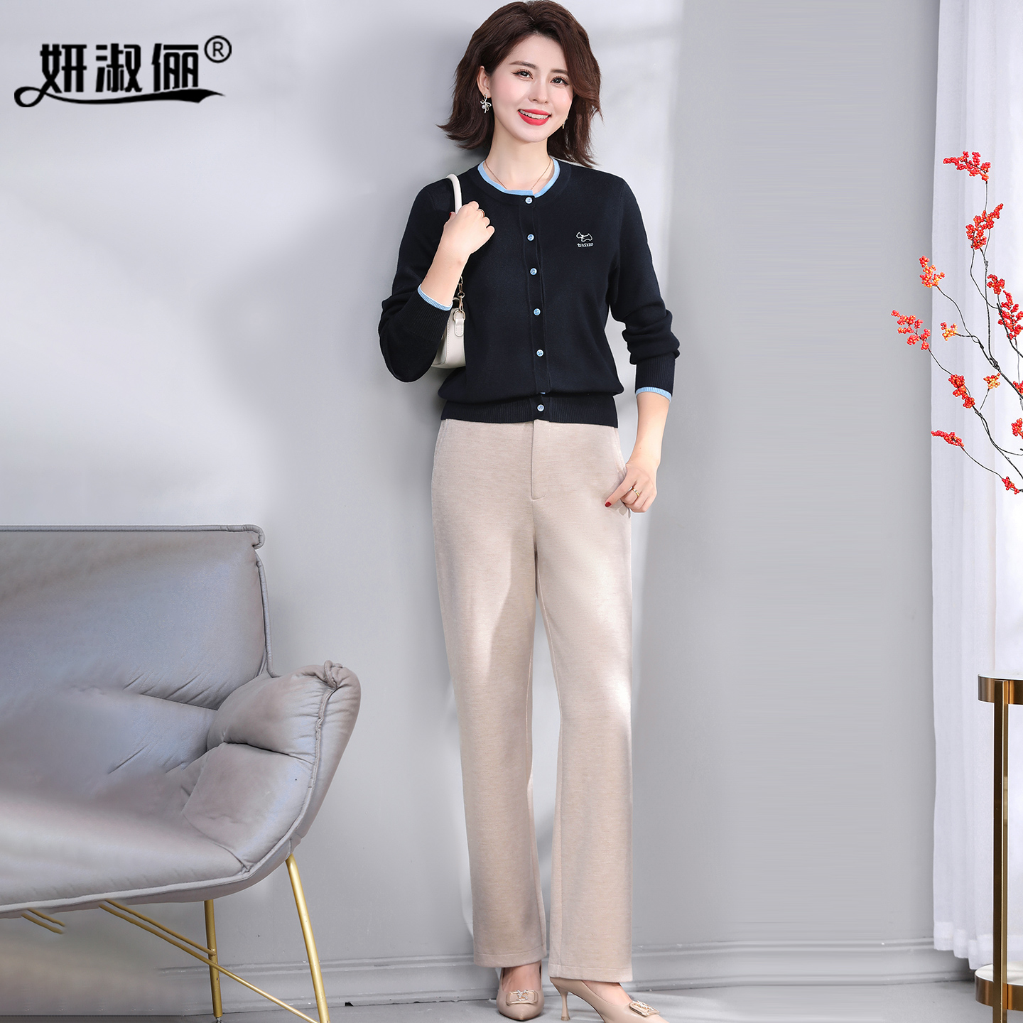 品牌羊毛针织衫撞色洋气高级感打底上衣2025秋装妈妈开衫薄款毛衣