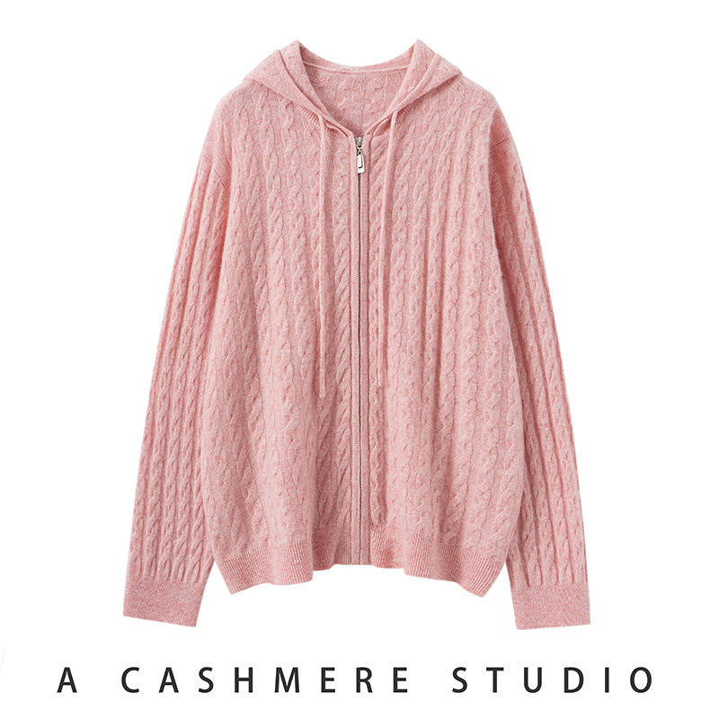 商场娜尔思专柜同款山羊绒开衫慵懒风拉链帽衫女针织宽松羊绒毛衣