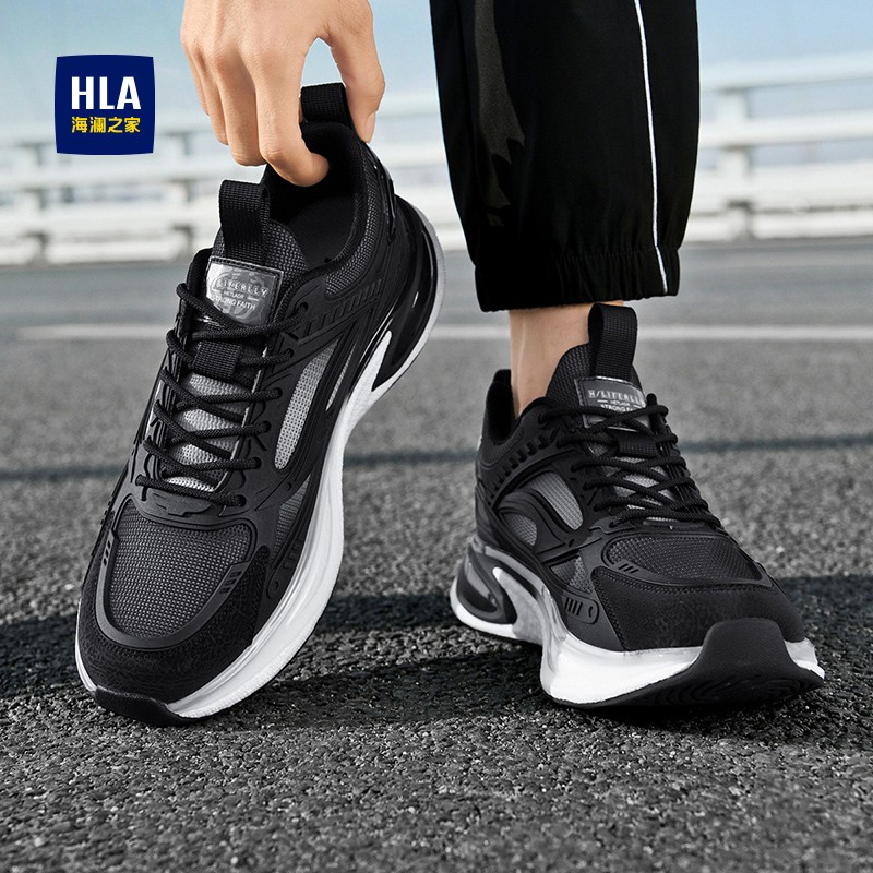 HLA/海澜之家男鞋2025新款秋冬网鞋男厚底增高透气网面跑步运动鞋