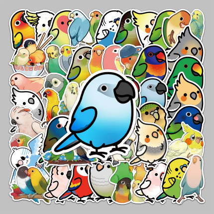 100张鹦鹉贴纸可爱卡通小鸟呆萌个性涂鸦小图案装饰贴画手机壳滑板车旅行箱拉杆箱摩托车充电宝耳机防水贴纸