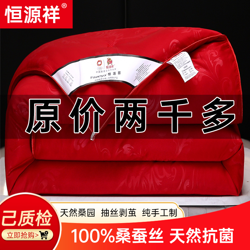 恒源祥100%桑蚕丝加厚冬被蚕丝被子母被二合一夏凉被春秋结婚被子