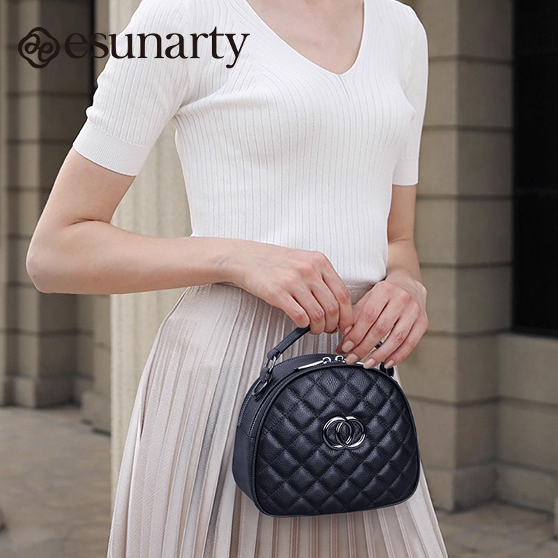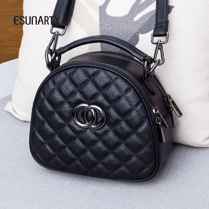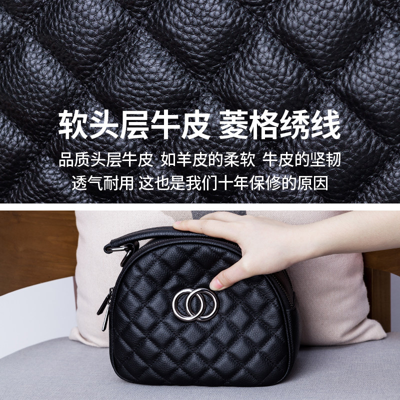 真皮斜挎包包女式2026新款小香风菱格手提包手拎单肩女款小圆包