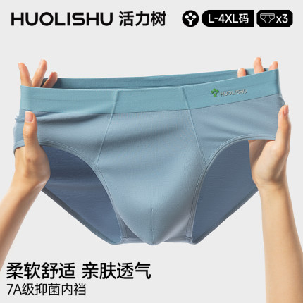 活力树男士三角内裤纯棉抗菌大码透气男生短裤头中腰底裤三角裤