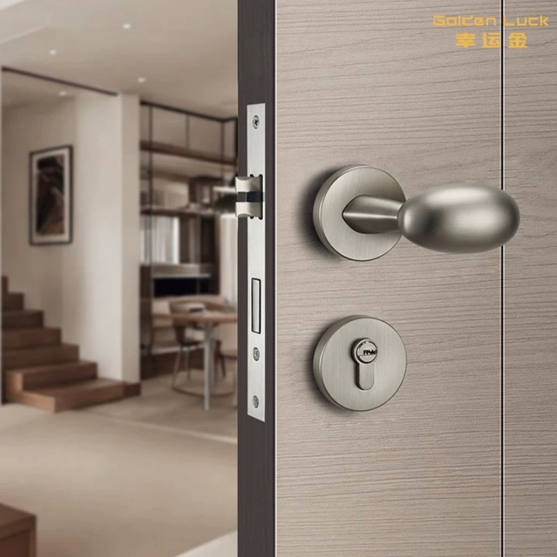 室内门锁卧室可爱儿童房鹅蛋型实木门把手锁具家用静音磁吸房门锁