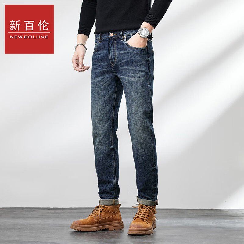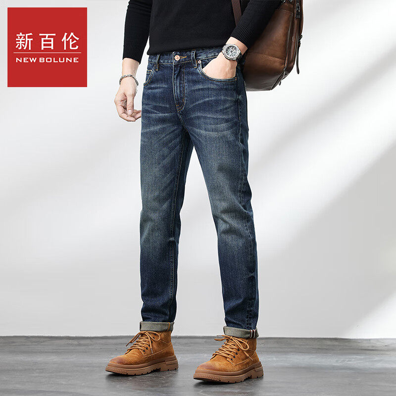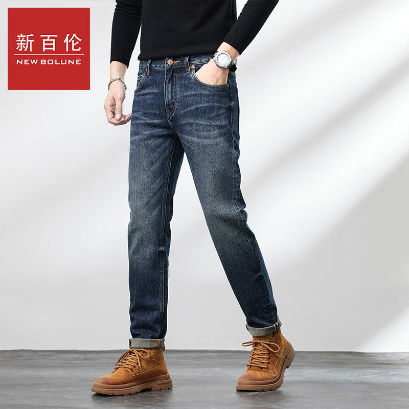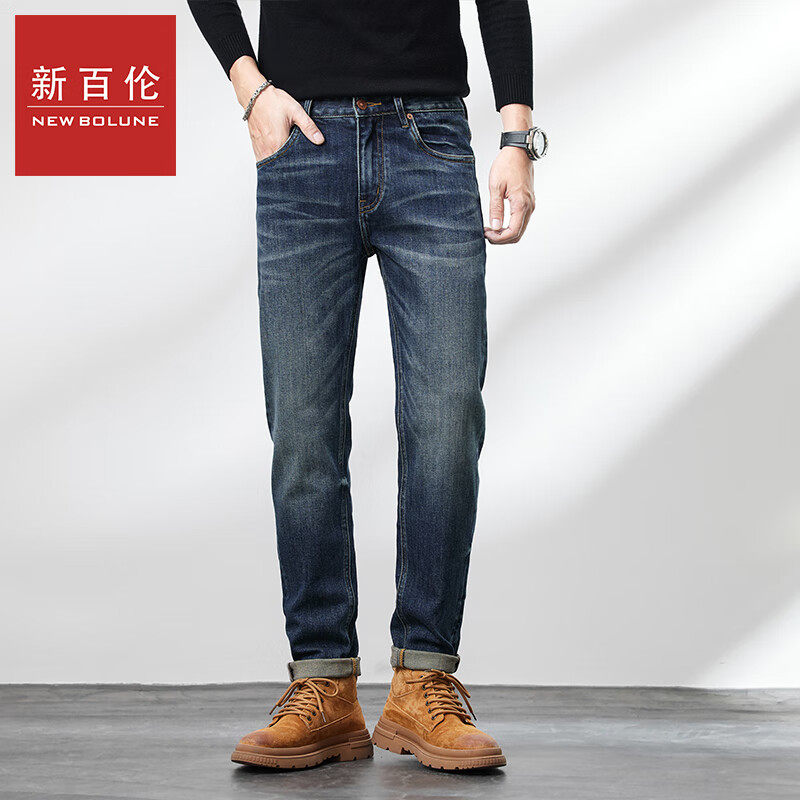 新百伦牛仔裤男士高端裤子男秋冬款直筒牛仔裤休闲百搭弹力修身潮