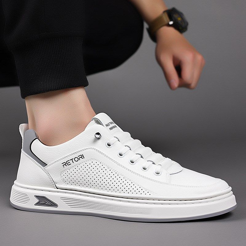 韩版青年真皮板鞋男2024夏季镂空透气网里小白鞋一脚蹬休闲皮凉鞋