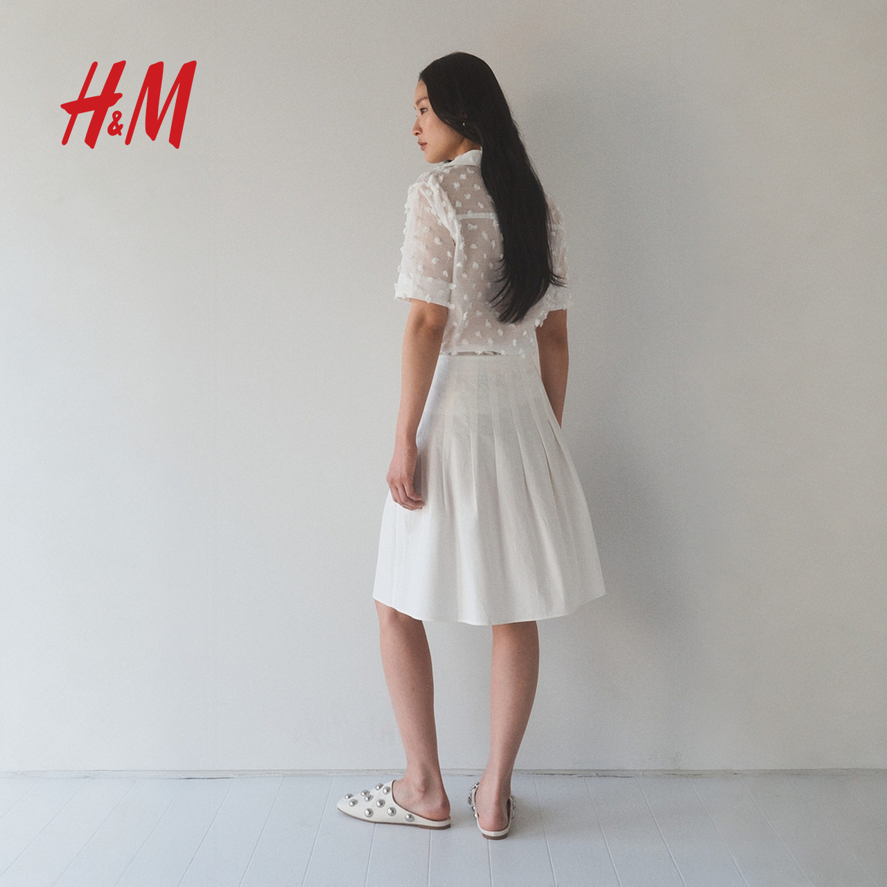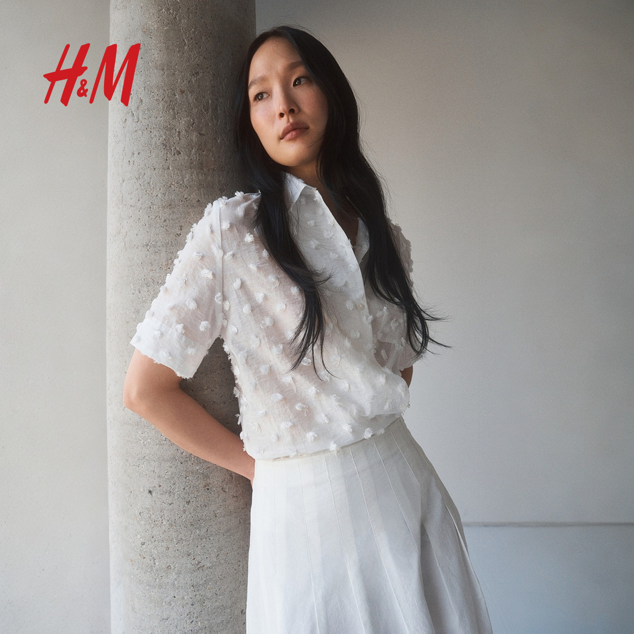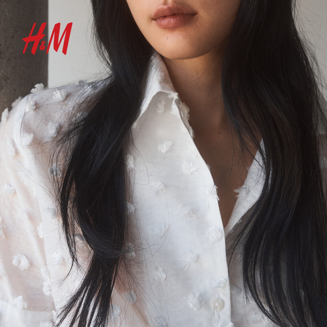 HM女装衬衫2025夏季新款宽松刺绣提花通勤短袖薄开衫上衣1296192