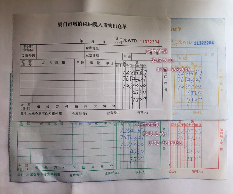 厦门市增值税纳税人货物进仓单进出仓单四联4联一般纳税人做账