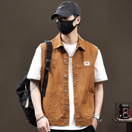 高级感痞帅休闲马甲男纯棉工装背心2025春秋季新款潮牌坎肩马夹潮